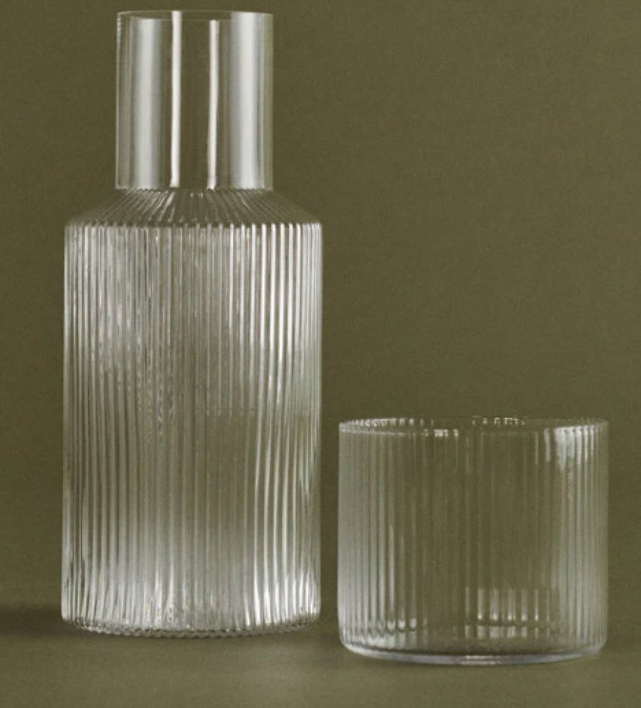 Tato praktická malá sada karafy a skla od Ferm Living je dokonalým doplňkem vaší sbírky sklenic a jídelního nádobí. Toto sklo je vyfukováno ústy do formy, což mu dodává jedinečný design. Rozměr: 7,5 x 18 cm