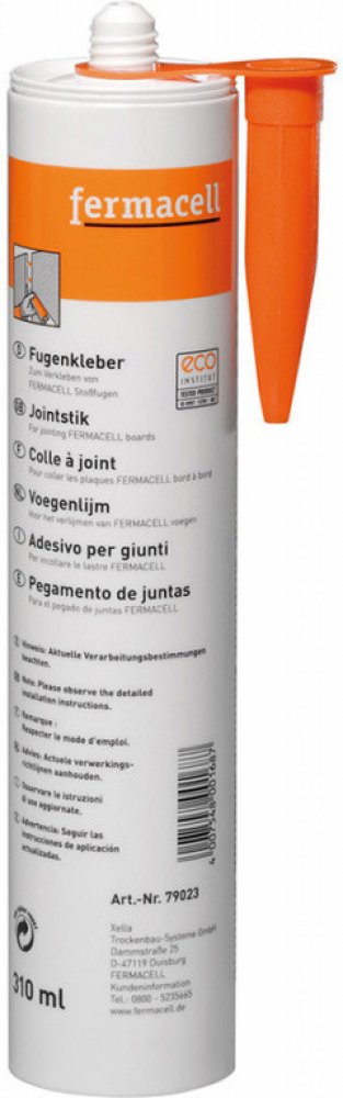 Spárovací lepidlo fermacell je lepící hmota na bázi polyuretanu. Během procesu vytvrzování spárovací lepidlo mírně pění, po zatvrdnutí je velice pevné. Použití Ke spojení na tupo sražených sádrovláknitých nebo cementovláknitých desek fermacell u stěn a stropů montovaných na stavbě. Nevhodné pro následné vyplnění/lepení spár. Vlastnosti vysoká pevnost spáry nedochází k praskání spár vysoká pevnost desky i u nepodložených vodorovných spár Výhody jednoduchá zpracovatelnost lepí a spáruje v jednom pracovním kroku optimální zpracování na stěnách a nad hlavou Balení plastová kartuše 310 ml