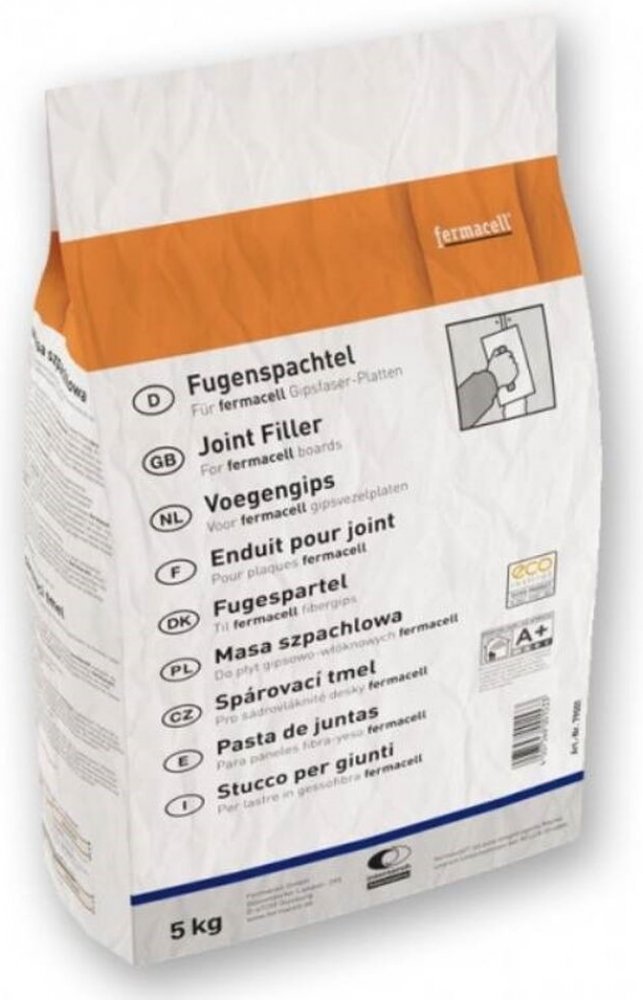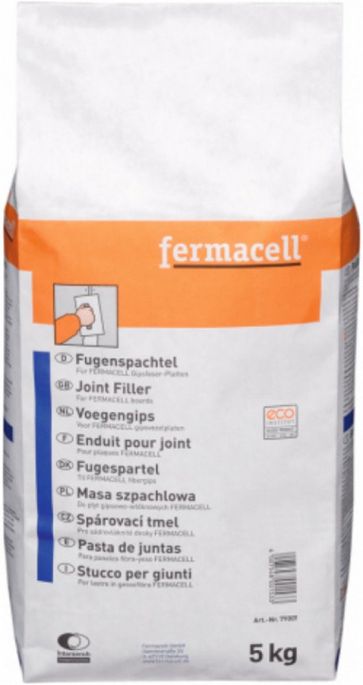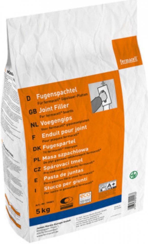 Spárovací tmel fermacell je tmel obohacený syntetickou pryskyřicí na bázi sádry pro ruční zatmelení spár s výztužnou páskou nebo bez ní. Díky speciálně vyvinuté receptuře je dosáhnuto extrémně vysoké pevnosti spár. Spárovací tmel splňuje požadavky dle ČSN EN 13963 a je vhodný pro vyplňování a zatmelení spár sádrovláknitých desek dle ČSN EN 520. Použití pro vytvoření pevných spár sádrovláknitých desek fermacell s ostrou, popř. zalomenou hranou desky pro zatmelení spár sádrovláknitých desek s TB hranou (přičemž zde se vkládají různé výztužné materiály) pro zastěrkování lepených spár a upevňovacích prostředků pro zastěrkování spár a upevňovacích prostředků u podlahových sádrovláknitých prvků pro vytmelení vadných míst a poškozeného podkladu Vlastnosti Maximální pevnost - rychlé zpevnění díky speciální receptuře fermacell Vysoká plnivost - později se nepropadá, nízký úbytek při vysychání Snadná zpracovatelnost - díky snadnému zahlazování Mnohostrannost - vyhovuje požadavkům normy ČSN EN 13963 Nízké emise Balení: 144 ks na paletě