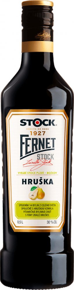 Fernet Stock Hruška je likér ze 14 bylin z celého světa spojený s chutí vyzrálé hrušky. Fernet Stock je klasický český hořký likér, který byl poprvé byl vyroben v roce 1927 Lionellem Stockem v továrně v Plzni Božkově. Legendární likér je vyráběn podle pečlivě střežené, tajné původní receptury založené na 14 bylinách z celého světa. Sortiment značky Fernet Stock získal několik mezinárodních ocenění...