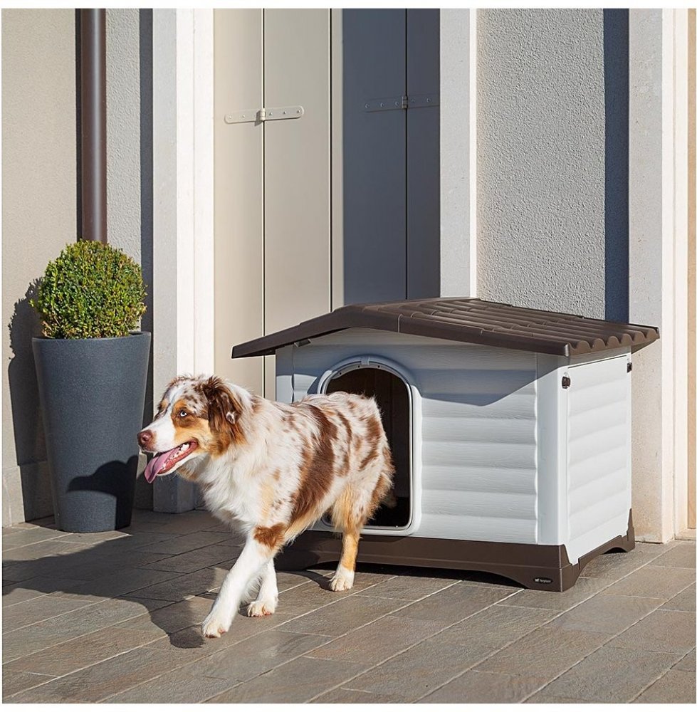 Nejen pro alergické čtyřnožce je Ferplast plastová psí bouda Dogvilla skutečnou oázou: Na hladkém povrchu se nečistoty ani prachové částečky při čištění neudrží a mohou být beze zbytku odstraněny. Také bakterie zde nemají žádnou šanci! Tato prostorná bouda je také originálním, prostorným zázrakem, protože s dostatečnou plochou se dá levá nebo pravá strana odklopit. V závislosti na tom, jak útulné útočiště postavíte, můžete přimontovat pohyblivou stěnu na žádoucí stranu. Tak bude mít Váš miláček na čistém, suchém místě absolutní přehled o okolním dění. Větrací otvory na zadním panelu lze nastavit ručně pomocí páky a zajistit optimální větrání. Otevřený vstup je posílen proti silným psím zubům hliníkem a dává tak dostatečnou stabilitu. Ferplast plastová psí bouda Dogvilla je útočištěm na celý rok a je velmi komfortní. Díky snadno čistitelnému plastu nepotřebuje žádnou speciální údržbu, jako každoroční nátěry a lakování, které vyyžadují dřevěné boudy. Stavba se dá snadno rozložit a přepravovat v rozloženém stavu. Ferplast plastová bouda pro psy Dogvilla ve zkratce: Celoroční bouda pro psy z odolného plastu Obzvláště odolná i proti povětrostním vlivům Prostor se dá zvětšit díky sklopné boční stěně na pravé nebo levé straně S manuálně regulovatelnou cirkulací vzduchu Komplexní systém odvádění vody S hliníkem posíleným vchodem Jednoduchá montáž i demontáž Hladký, snadno čistitelný povrch Hygienická a bez mikroorganismů Velikost Ferplast psí boudy Baita: Dogvilla 70 Dogvilla 90 Dogvilla 110 Vnější velikost (vč.střechy): D 74 x Š 59 x V 53 cm D 88 x Š 72 x V 65 cm D 111 x Š 84 x V 79 cm Velikost bez střechy: D 64 x Š 44,5 x V 53 cm D 78,5 x Š 57,5 x V 65 cm D 98,5 x Š 68,5 x V 57 cm Otevírání dveří Š 20 x V 30 cm Š 24 x V 37 cm Š 30 x V 46 cm Boční otevírání Š 33 x V 33 cm Š 44 x V 42 cm Š 52 x V 52 cm Střešní okénko: 6 cm 6 cm 6 cm Přesah střechy: vstup / na straně / vzadu 9,5 x 4,5 x 5,0 cm 10,5 x 5,5 x 5,0 cm 11,5 x 7 x 5,0 cm Tloušťka střechy 3 cm 3 cm 3 cm Vezměte prosím na vědomí: Bouda by neměla být příliš velká, protože pes se dokáže zahřát i svým tělesným teplem a udržet si ho. Je-li bouda příliš velká, hrozí zde nebezpečí, že pes snadno prochladne. Na druhé straně je vždy připravena pro dostatečné větrání. Otevřete v horkých dnech všechna větrání. Tip: Váš pes bude mít v boudě větší pohodlí, když mu do ní dáte deku nebo polštář.