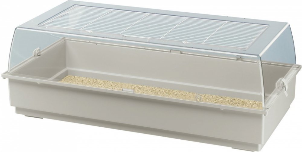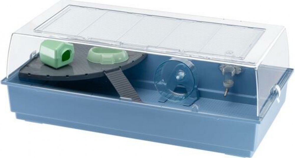 Maxi Duna Multy je velmi prostorná, má jednoduchý tvar a je ideálním domovem pro křečky, morčata a králíky. Je velmi velký - téměř jeden metr dlouhý - a má velkou průhlednou plastovou střechu s mřížkou nahoře, kterou lze otevřít.