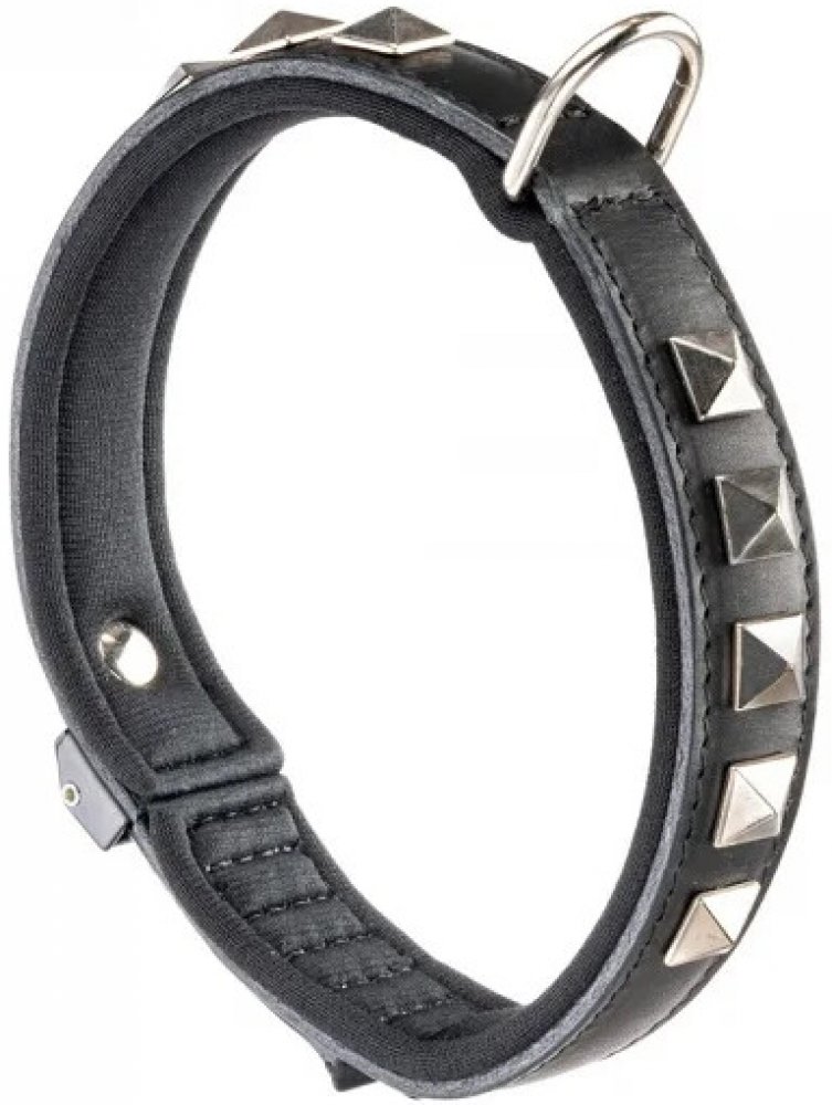 Obojek pro psy z eko-kůže s kovovými prvky. Rozměry: A:40-44 cm/20mm