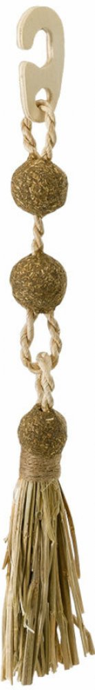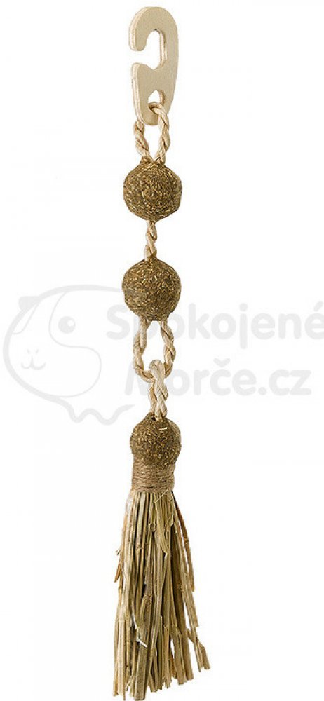 Hračka je vybavena háčkem k pohodlnému zaháknutí do klece.