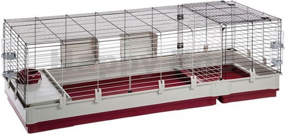Klec FERPLAST Krolik 160 162x60x50cmKlec pro králíky a morčataSpecifikace produktuluxusní klec pro králíky a morčatapřídavný prostor oddělené dveřmisoučástí je plastový domeček, seník, napáječkyvhodné i pro chov více zvířatposkytne Vašemu mazlíčkovi dostatek prostoru pro hru i odpočinekmoderní design