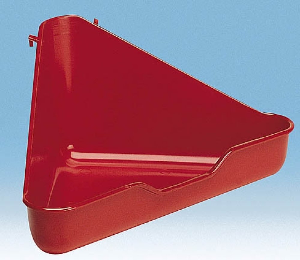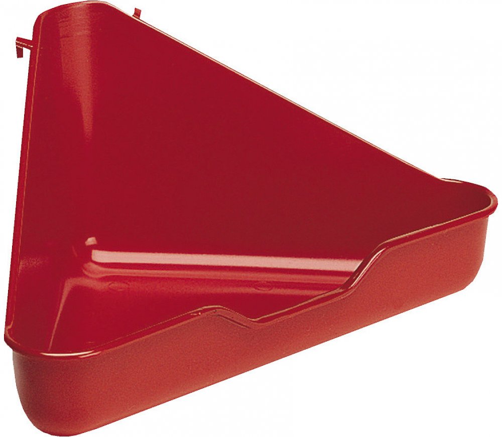 Praktická rohová toaleta je vyrobena z plastu, její údržba je snadná. Má chytré úchyty, díky kterým se zachytí na stěnách klece a necestuje po podlaze.