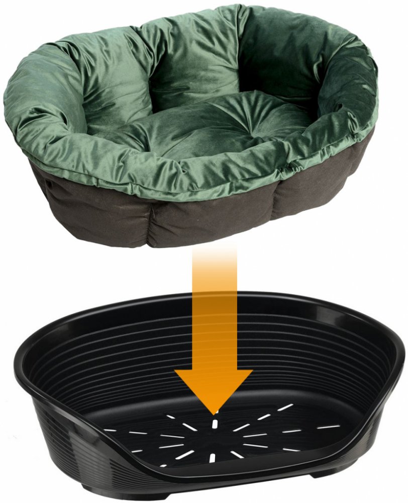 Ferplast Siesta Deluxe je praktický koš pro Vašeho mazlíčka, pro použití v interiéru. Protože je vyrobený z plastu, je obzvláště hygienický a snadno se čistí. Koš má vysoký okraj, takže se Váš mazlíček může v koši pohodlně stočit nebo se opřít. Nízký vstup usnadňuje zejména starším nebo menším zvířatům přístup do pelíšku. Protiskluzové nožičky se postarají o bezpečné držení a zabraňují klouzání. Navíc díky nožičkám neleží koš přímo na podlaze. V kombinaci s větracími otvory ve dně koše se postarají o cirkulaci vzduchu pod pelíškem a brání hromadění tepla. Ideálně padnoucí polštář Ferplast Sofa najdete zde: Polštář Ferplast Sofa - antracit Polštář Ferplast Sofa - Cities Ferplast Siesta Deluxe koš černý: Prostorný plastový koš pro psy a kočky Větrací otvory: cirkulace vzduchu zabraňuje hromadění tepla Nízký vstup: usnadňuje přístup Vysoký okraj: optimální pro opření Hygienický: snadno se čistí Vyklenutý okraj, ideální pro upevnění polštářů Ferplast Sofa Protiskluzové nožičky: bezpečně drží koš na místě Jednoduchý design Nízká hmotnost Materiál: plast Barva: černá Ferplast Siesta Deluxe koš černý je k dispozici v následujících velikostech: Velikost Koš Plocha na ležení Výška vstupu Vhodný pro polštář Ferplast Sofa - velikost: 2 D 49 x Š 36 x V 17,5 cm D 43 x Š 28 cm 6 cm 2: D 52 x Š 39 x V 21 cm 4 D 61,5 x Š 45 x V 21,5 cm D 54 x Š 35 cm 7 cm 4: D 64 x Š 48 x V 25 cm 6 D 70,5 x Š 52 x V 23,5 cm D 62 x Š 41 cm 8 cm 6: D 73 x Š 55 x V 27 cm 8 D 82 x Š 59,5 x V 25 cm D 74 x Š 48 cm 9,5 cm 8: D 85 x Š 62 x V 28,5 cm 10 D 93,5 x Š 68 x V 28,5 cm D 84 x Š 55 cm 10,5 cm 10: D 96 x Š 71 x V 32 cm Poznámka: Vyobrazené polštáře nejsou součástí dodávky a lze je objednat samostatně.