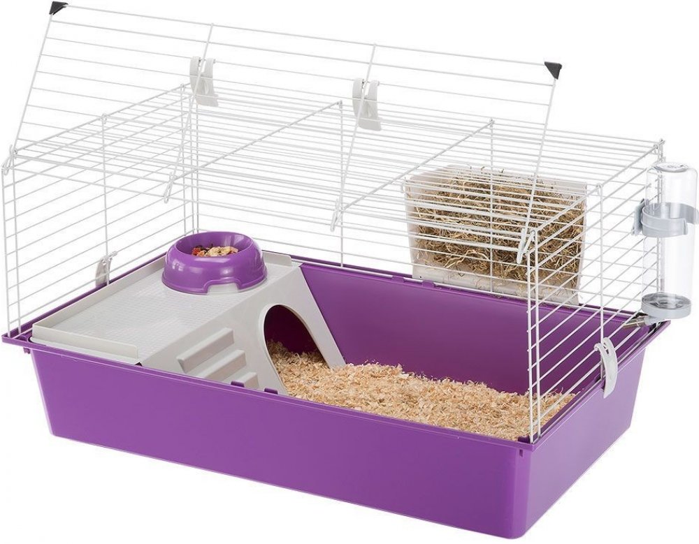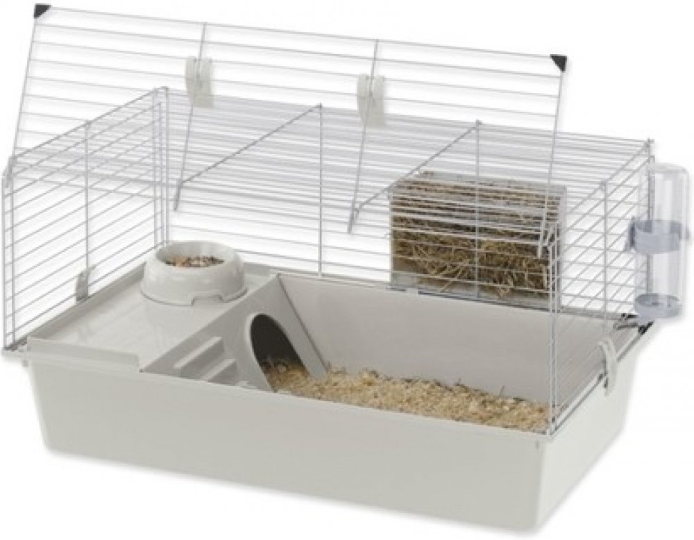 Cavie 80 je klec pro morčata se speciálním systémem otevírání a zavírání, který zaručuje naprostou bezpečnost pro malé hlodavce. Přední dvířka jsou opatřena speciálními plastovými sponami, které umožňují snadné připevnění ke dnu, zcela otevíratelné pro usnadnění čištění. Klec má plastové dno a malovanou kovovou síťovinou. Uvnitř najdete příslušenství, jako je plastový piják a podavač pro seno.