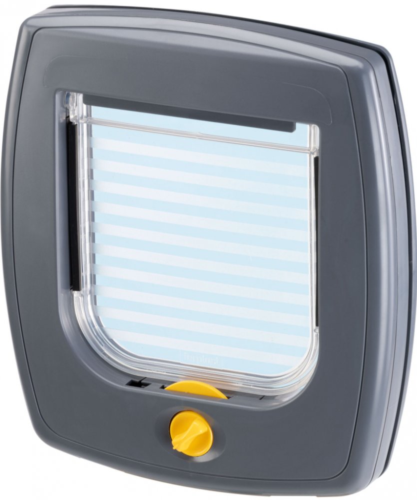 Boudy a dvířka Ferplast Swing 3 dvířka, šedá: plastová univerzální dvířka pro psy i kočky, pro montáž na všechny druhy materiálů, jsou vybavena čtyřcestným zámkem dvířek (otevřeno nebo zavřeno, otevřen pouze dovnitř nebo otevřeno pouze ven), s magnetickým systémem proti houpání, rozměr vstupního průchodu: 14,5 × 14,8 cm, celkové rozměry: 22,5 × 5 × 25,2 cm.