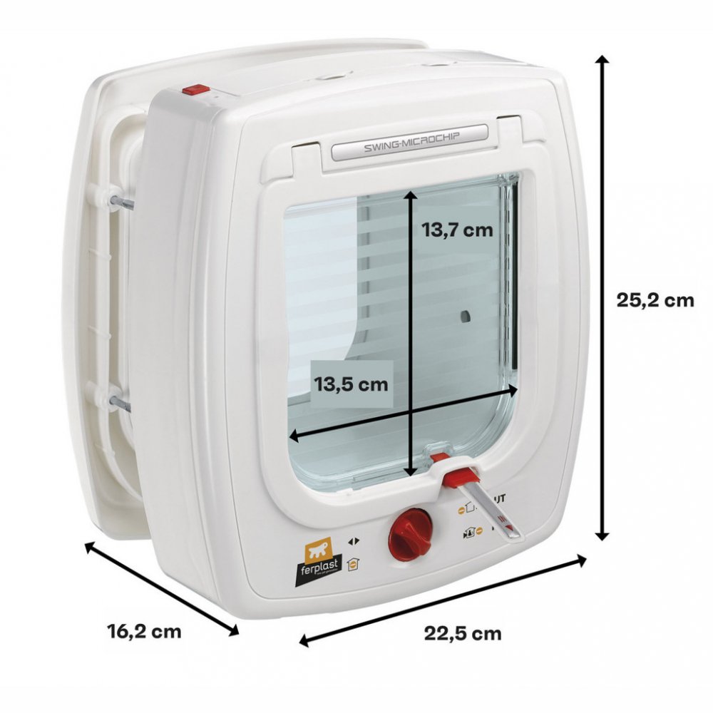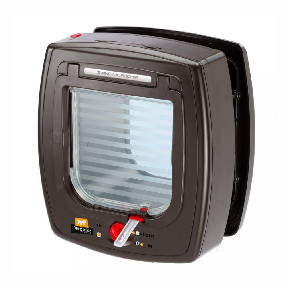 Boudy a dvířka Ferplast Swing Microchip dvířka, hnědá: inovativní systém umožňující vstup zvířat a otevření dvířek pomocí mikročipu, mikročip se kontroluje pouze na vstupu, nikoliv na výstupu, pro montáž na všechny druhy materiálů, provoz na baterie (má indikátor nízkého napětí baterie), jsou vybavena čtyřcestným zámkem dvířek (otevřeno nebo zavřeno, otevřen pouze dovnitř nebo otevřeno pouze ven),...