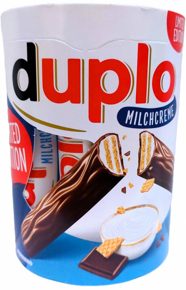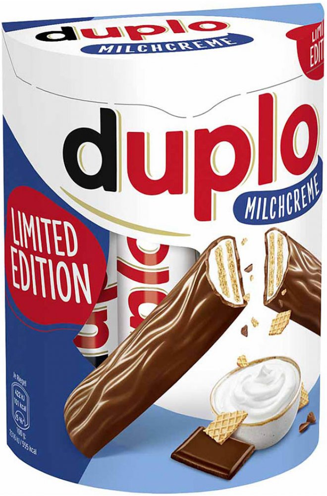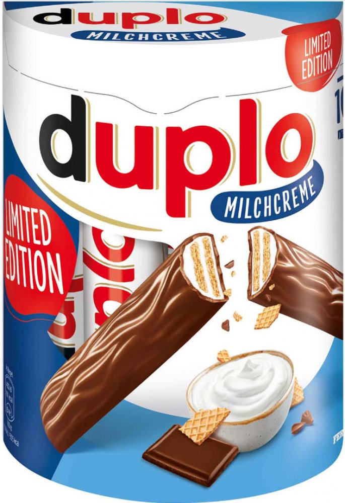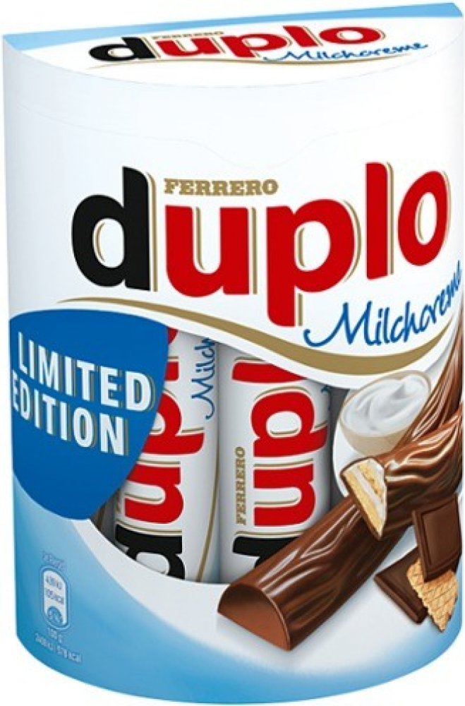 Oblíbená tyčinka Duplo v mléčné a bílé čokoládě v limitované edici s náplní z mléčného krému - celé balení 10 ks.