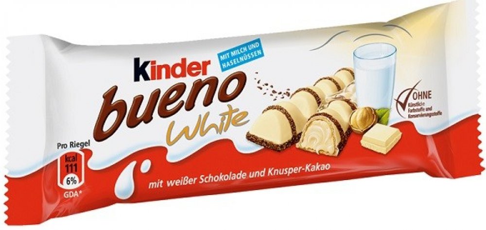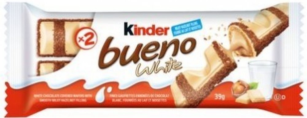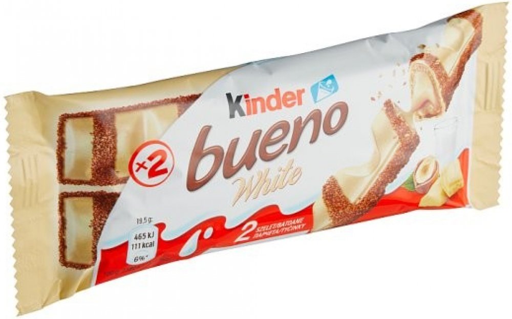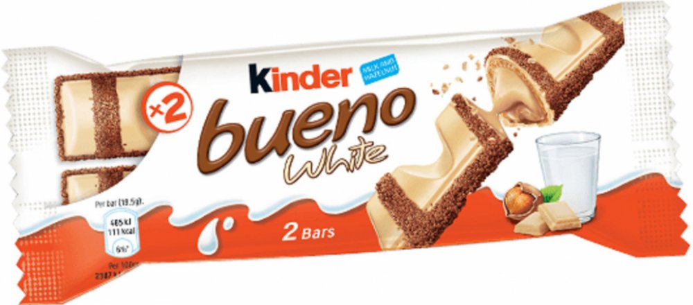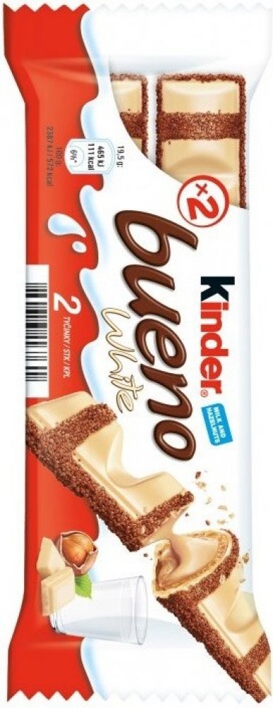 Bílá čokoláda 28 % (kakaové máslo, cukr, odtučněné sušené mléko (23 %), máselný tuk, emulgátor: lecitiny (sójové); vanilin), cukr, palmový olej, pšeničná mouka, odtučněné sušené mléko (8,5 %), plnotučné sušené mléko (5,5 %), lískové oříšky (5 %), sušená syrovátka (z mléka), pšeničný škrob, kakaový prášek se sníženým obsahem tuku, slunečnicový olej, mléčné bílkoviny, emulgátor: lecitiny (s...