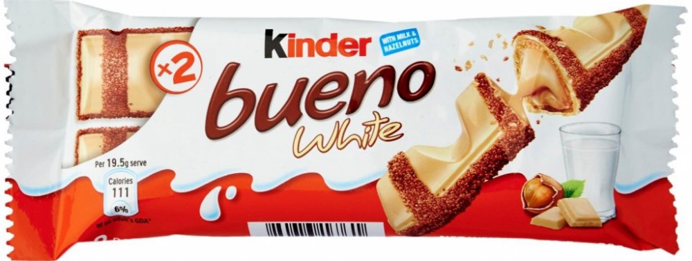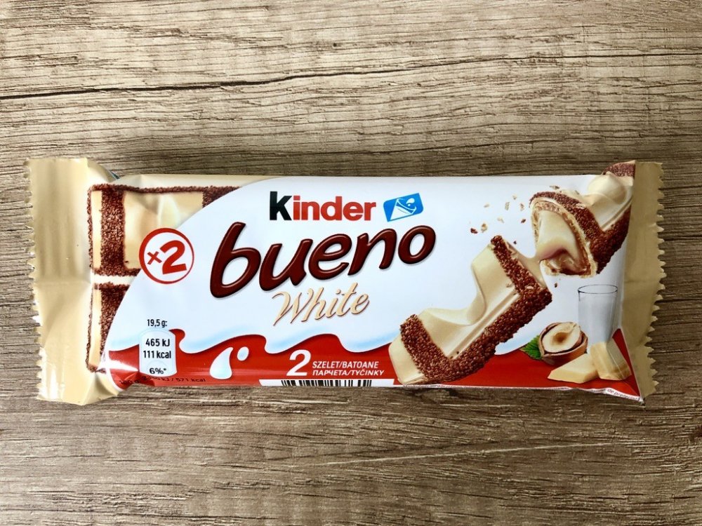 Bílá čokoláda 28 % (kakaové máslo, cukr, odtučněné sušené mléko (23 %), máselný tuk, emulgátor: lecitiny (sójové); vanilin), cukr, palmový olej, pšeničná mouka, odtučněné sušené mléko (8,5 %), plnotučné sušené mléko (5,5 %), lískové oříšky (5 %), sušená syrovátka (z mléka), pšeničný škrob, kakaový prášek se sníženým obsahem tuku, slunečnicový olej, mléčné bílkoviny, emulgátor: lecitiny (sójové), kypřící látky (E 503ii, E 500ii), aromata, jedlá sůl.