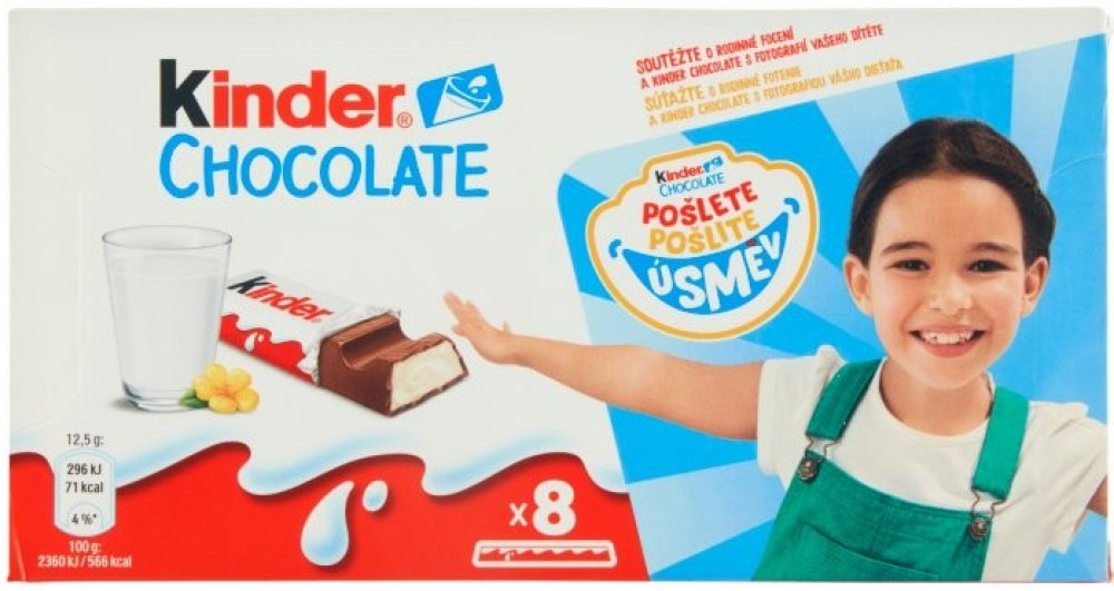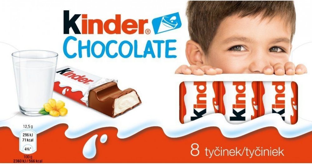 Díky své receptuře s lahodnou krémově mléčnou náplní je Kinder Chocolate dokonalým malým pamlskem – speciálně vytvořeným pro děti a spokojené maminky. Kinder Chocolate neobsahuje žádná umělá barviva ani ztužené tuky. Každá tyčinka dětské velikosti je zabalená samostatně.