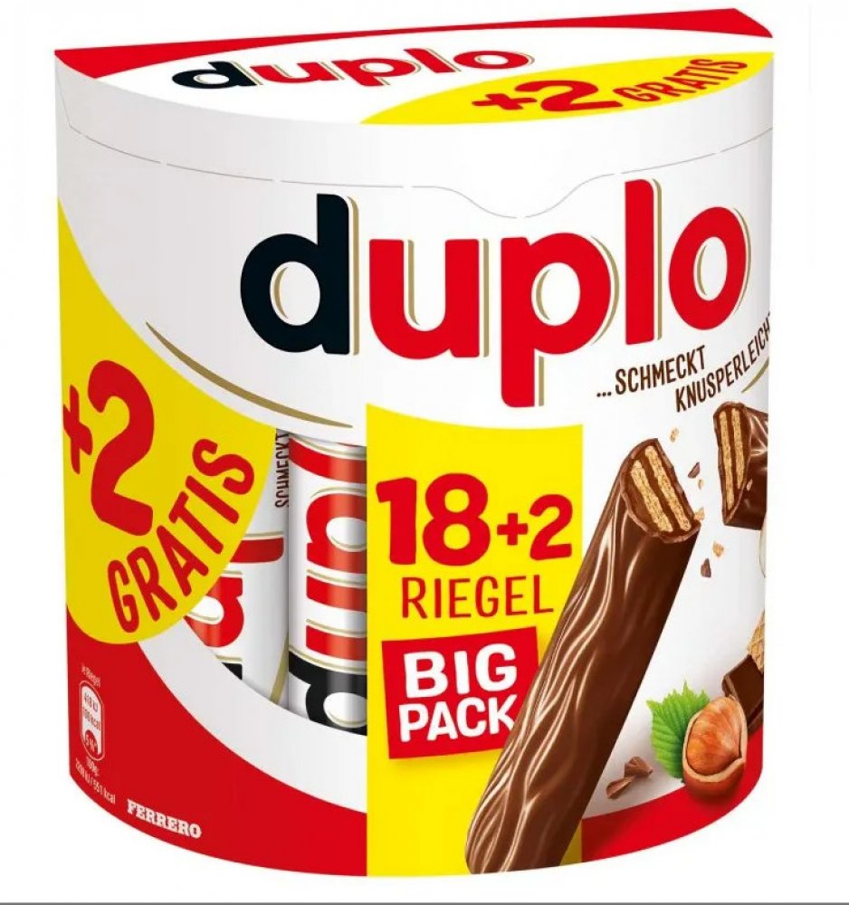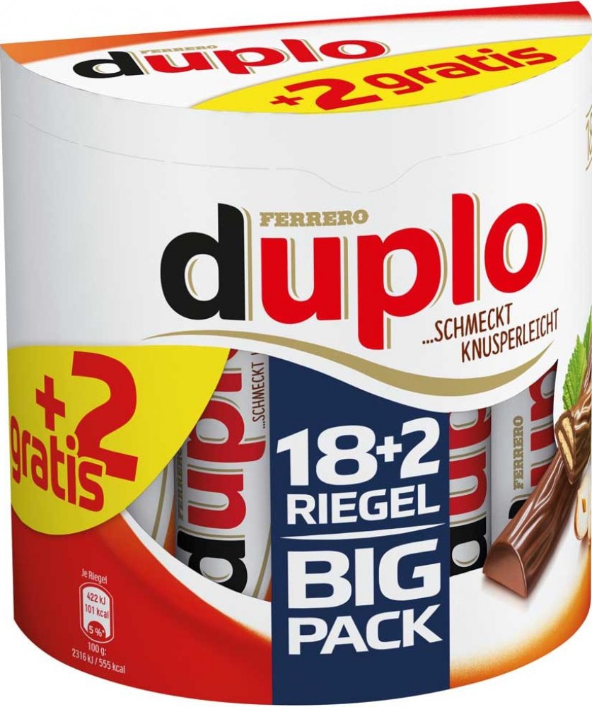 Mléčná čokoláda 49,5 % (cukr, kakaové máslo, sušené plnotučné mléko, kakaová hmota, emulgátor lecitin (sójový), vanilin), cukr, rostlinné tuky (palmový, bambucký), pšeničná mouka, lískové oříšky (5,5 %), kakao se sníženým obsahem tuku, sladká syrovátka, emulgátor lecitin (sója), syrovátka obohacená o bílkoviny, pšeničný škrob, sůl, vanilin, kypřící látka: hydrogenuhličitan sodný.