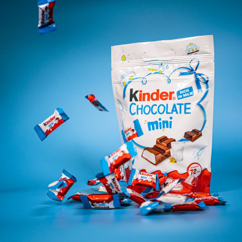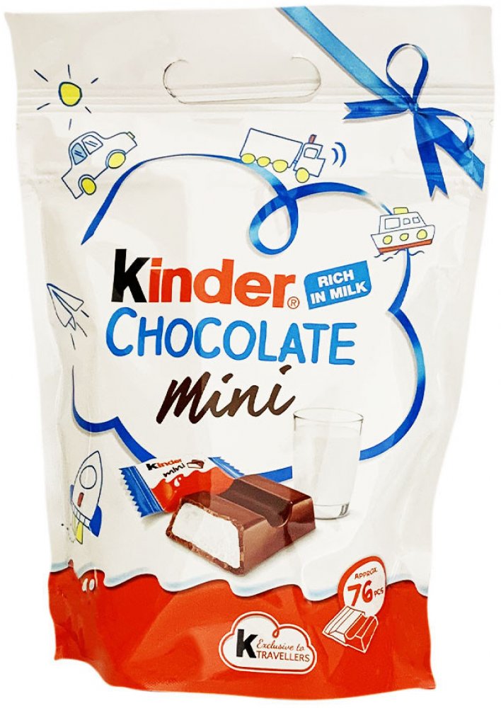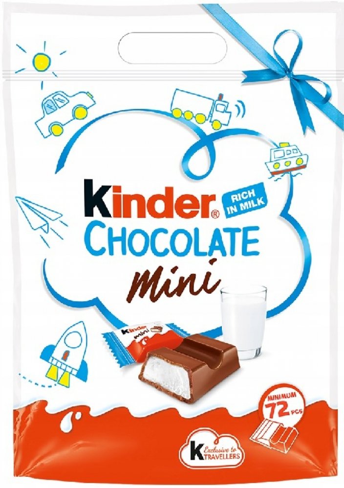 Užijte si radostné okamžiky Vašeho života s těmito mini čokoládkami od Kinder. Oblíbené Kinder čokoládky s lahodnou mléčnou náplní a obalené v prémiové mléčné čokoládě a známém designu. Čokoládky jsou samostatně balené a hodí se tak jako malá sladká odměna pro Vaše děti, či pro Vás samotné.
