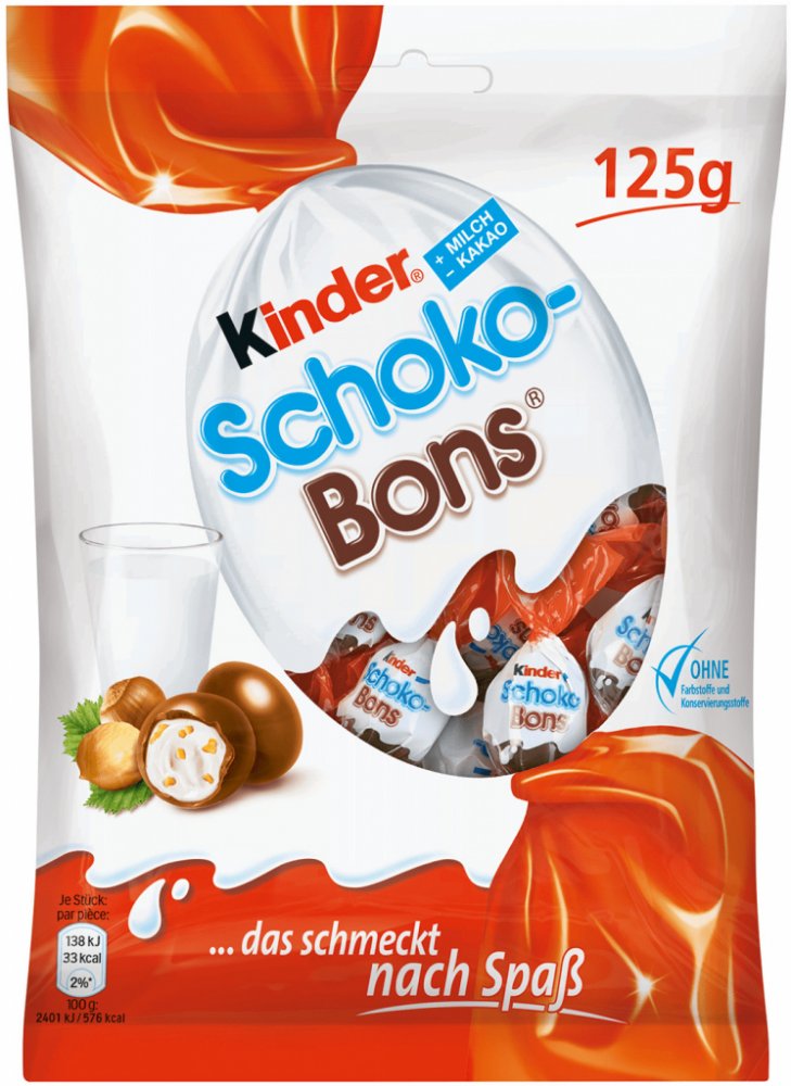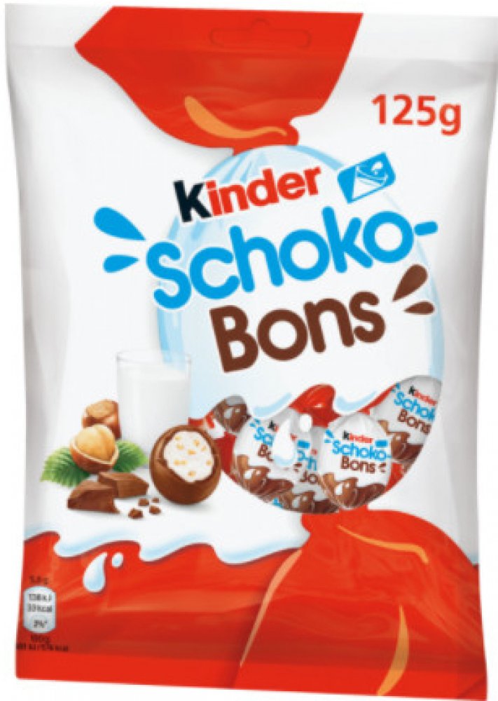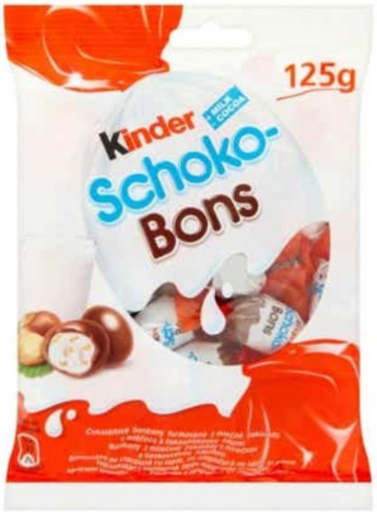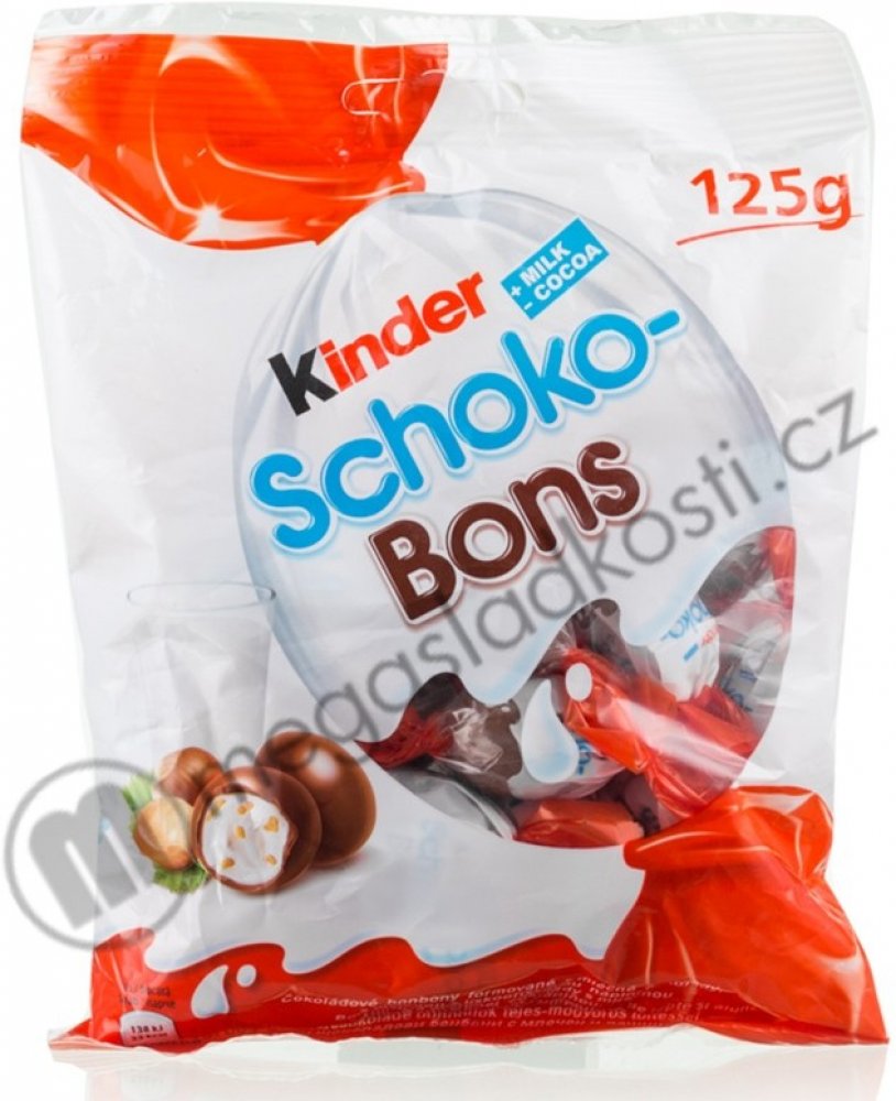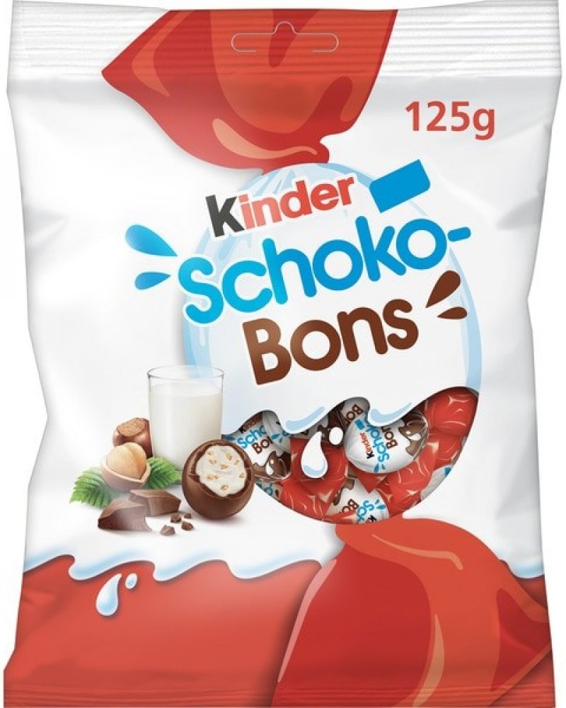 Čokoládové bonbony Kinder Schoko-Bons skrývají pod vrstvou mléčné čokolády mléčnou náplň s křupavými lískovými oříšky. O čokoládové bonbony se nebudete chtít dělit ani se svými dětmi! Řešení je jednoduché: objednejte rovnou více balení. Cukrovinka Kinder Schoko-Bons nesmí chybět na žádné narozeninové oslavě a party. Jednotlivé bonbony jsou hygienicky zabalené a můžete je tak nasypat na talířek. Užijte si jedinečný požitek z chuti typické pro Kinder cukrovinky!
