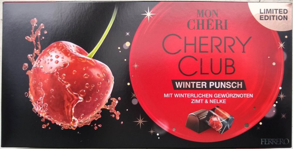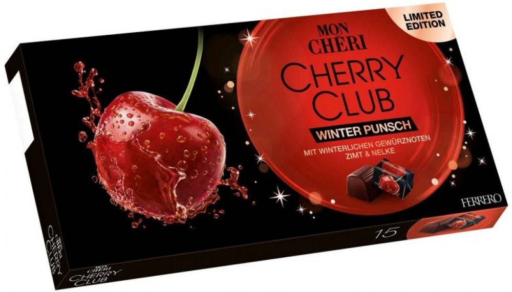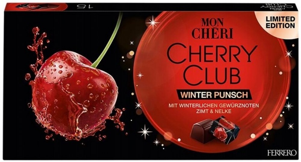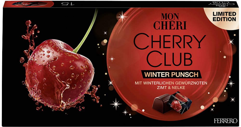Chuť zimy ve své nejlepší podobě. Mon Chéri Cherry Club Winter Punch zaujme klasickými příchutěmi třešňovéholikéru Mon Chéri, doplněnými o zimní punč, jemnou čokoládu a špetku skořice. Požitek, který zahřeje nejen vaše chuťové buňky, ale i srdce. Speciální pamlsek je ideální pro útulné zimní večery a jako elegantní dárek pro vánoční období.