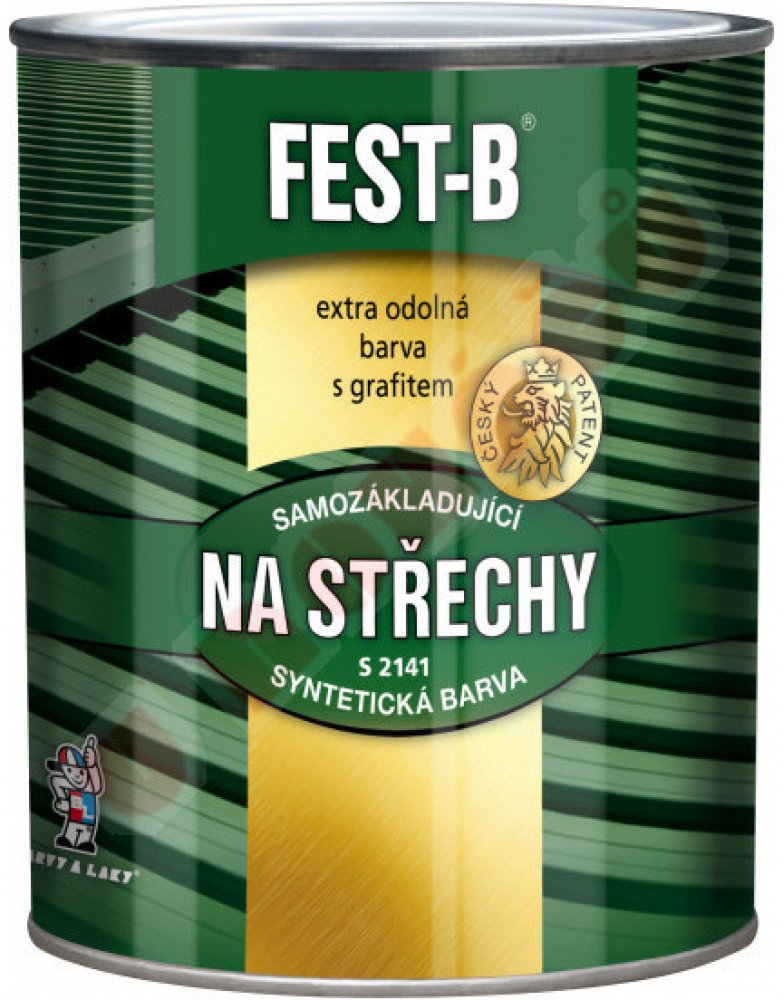 FEST-B 2v1 NA STŘECHY je samozákladující antikorozní barva s grafitem určená zejména k jednovrstvým venkovním ochranným nátěrům plechových střešních krytin, okapů, ocelových konstrukcí a dalších kovových předmětů vystavených trvalému působení povětrnostních vlivů a slunečního záření. Obsahuje kromě inhibitoru koroze i absorbér UV záření, který chrání pojivo barvy proti degradaci. Ochranu proti deg...