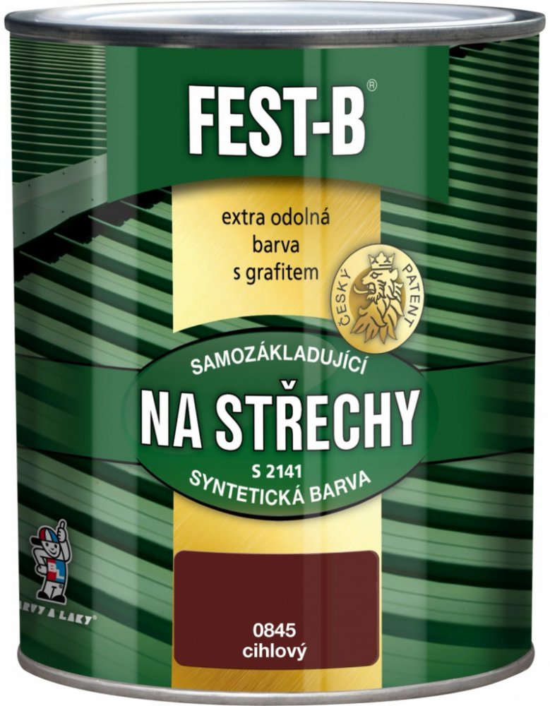 FEST-B 2v1 NA STŘECHY je samozákladující antikorozní barva s grafitem určená zejména k jednovrstvým venkovním ochranným nátěrům plechových střešních krytin, okapů, ocelových konstrukcí a dalších kovových předmětů vystavených trvalému působení povětrnostních vlivů a slunečního záření. Obsahuje kromě inhibitoru koroze i absorbér UV záření, který chrání pojivo barvy proti degradaci. Ochranu proti deg...