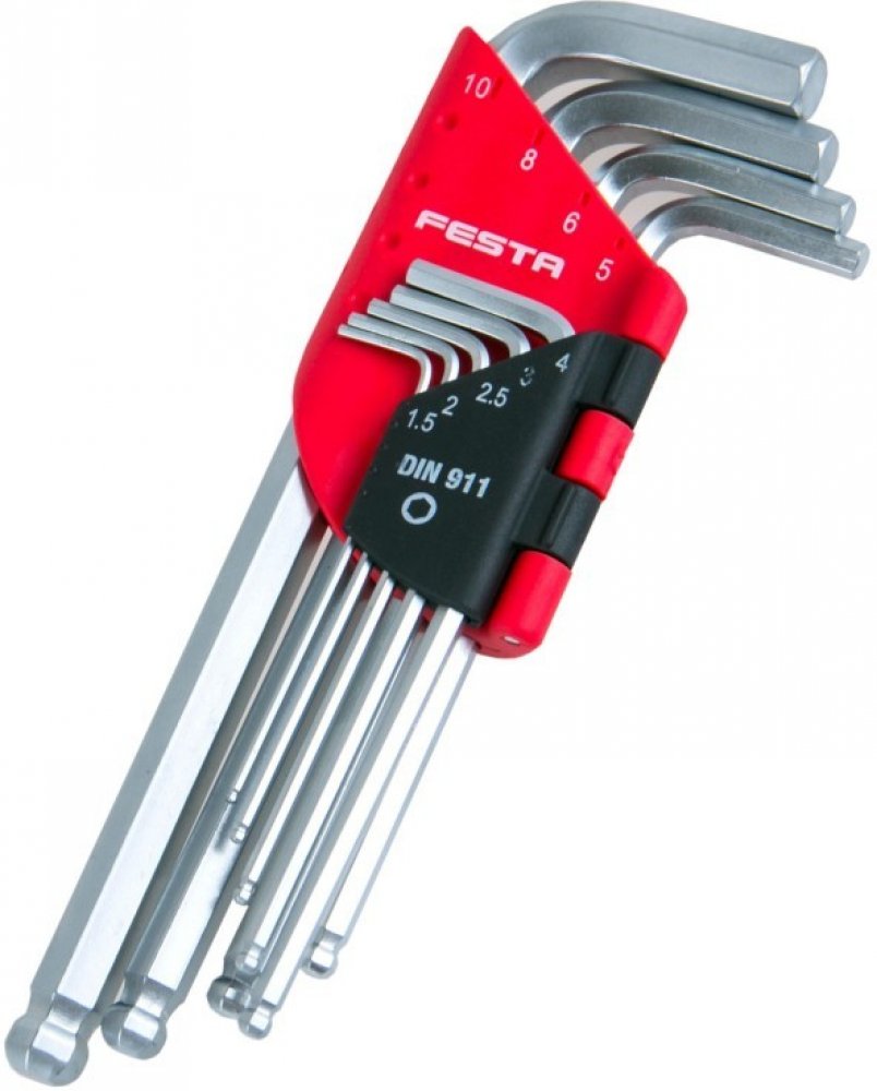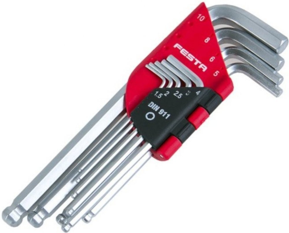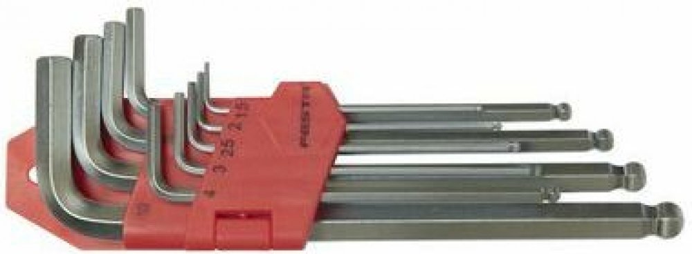 Sada nejpoužívanějších rozměrů L šetihranných klíčů (imbusů). L-klíče jsou vyrobeny z kvalitní chrom-vanadiové oceli a jsou tvrzené v celé délce. Sada je dodávána v praktickém plastovém pouzdře, kde má každý rozměr svoje místo.