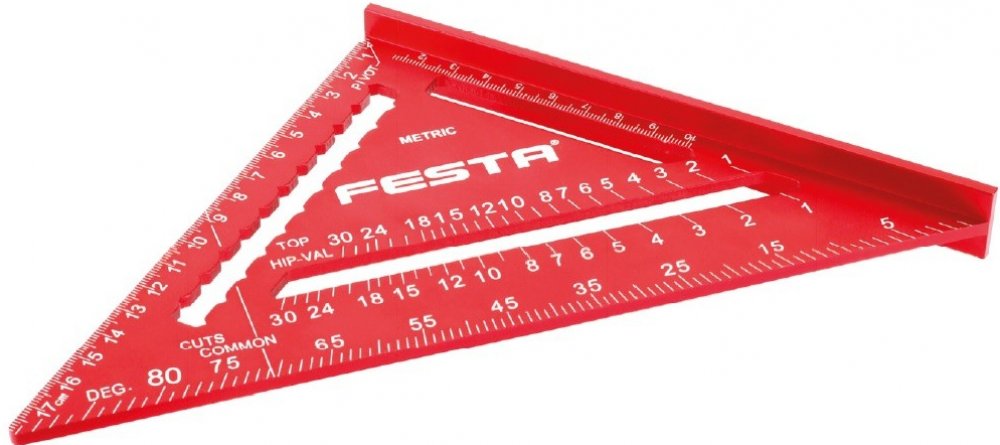 - naznačené úhly pro široký rozsah použití, zaměření, značení a práce se dřevem, kovy, plasty apod.