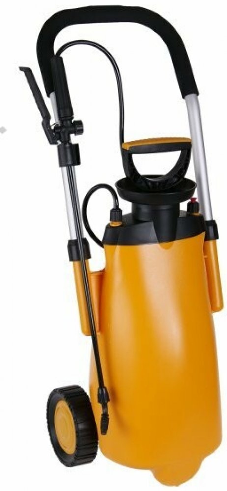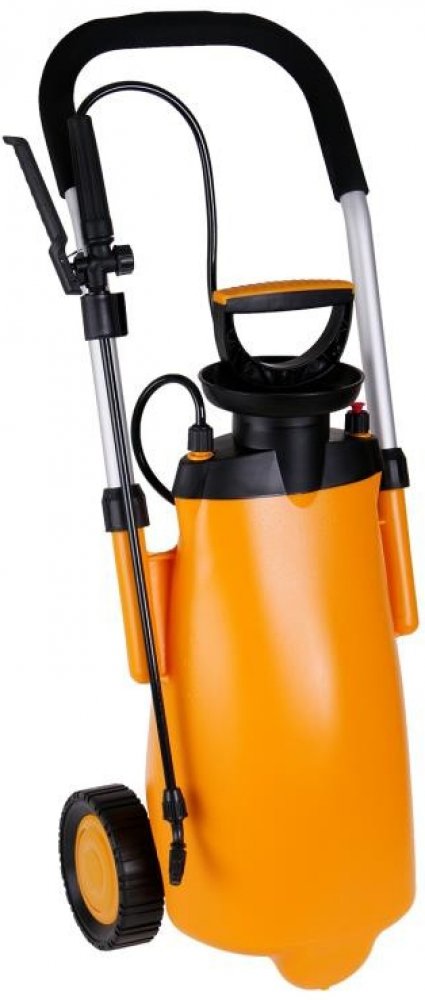 - hliníková robustní rukojeť pro snadnou manipulaci s postřikovačem potažená měkčeným plastem pro pohodlný úchop, odolná pojezdová kolečka, stabilní konstrukce