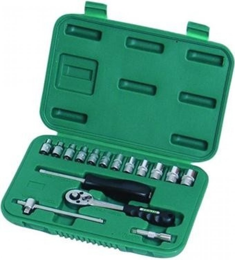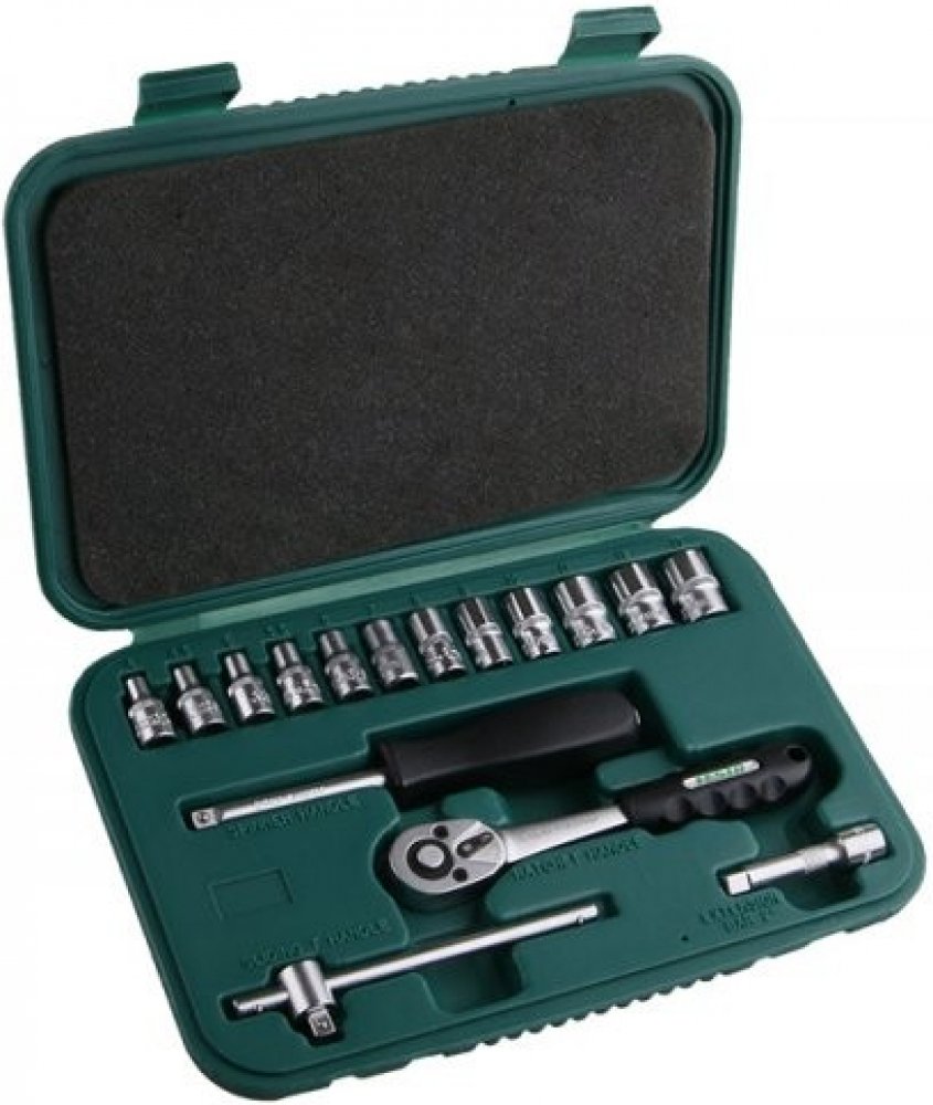 Vysoce kvalitní sada gola klíčů, záruka 10 let. Všechny části jsou vyrobeny z vysoce kvalitní chrom-vanadiové oceli. Veškeré hlavice a díly vyrobené kováním. Niklová povrchová úprava. Hroty bitů jsou ze slitiny oceli S2. Ráčny mají jemné dělení 72 zubů, tělo ráčny z CrV oceli, zubový mechanismus z S2 oceli, ergonomicky tvarovaná rukojeť. Velmi odolné kufry z ocelového lakovaného plechu. Použití do...