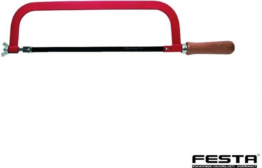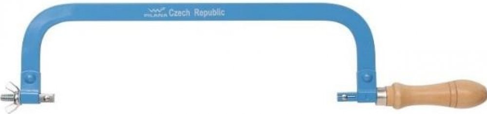 Ruční pila na kov s dřevěnou rukojetí, zesíleným rámem a kovovým šroubem určeným pro snadnou a rychlou výměnu pilového plátku. Ocelový pilový plátek má kalené zuby vhodné pro řezání různých kovů. Celková délka rmu pily je 300 mm.