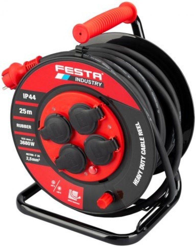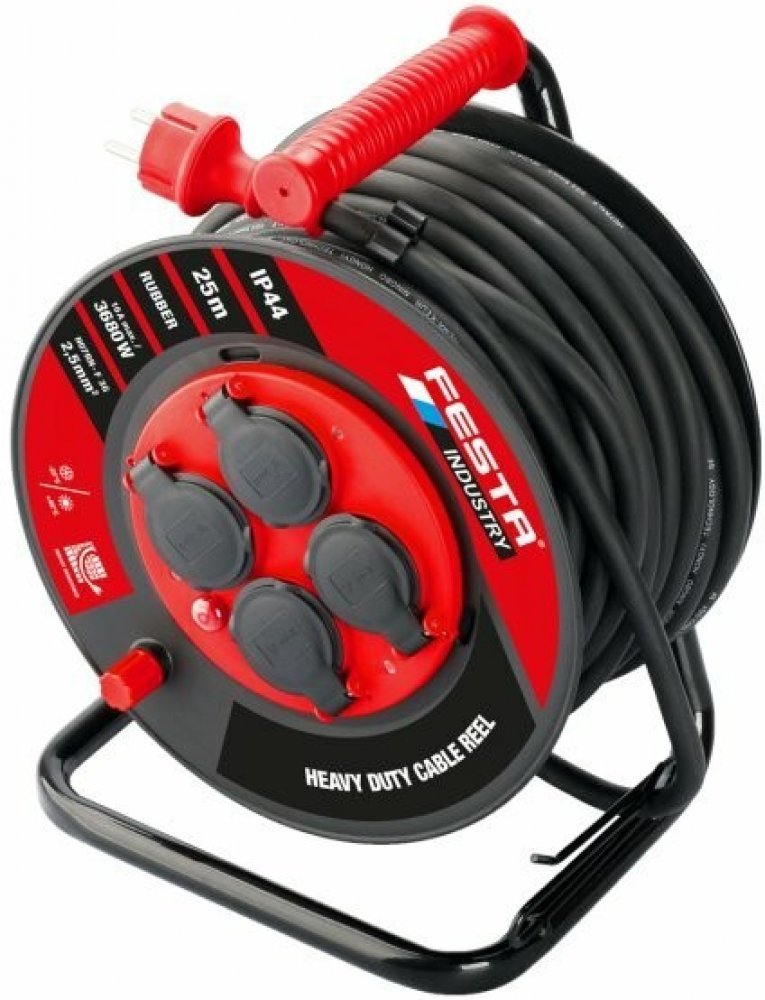 - prodlužovací kabel na bubnu se 4mi zásuvkami 3 x 2,5 mm na 230 V, pro venkovní použití - i trvalé