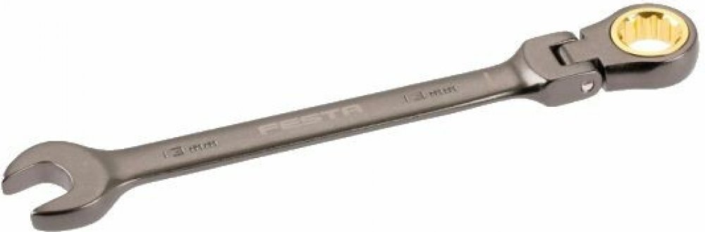 Ráčnový klíč kloubový FESTA 13 mm - Ráčnové klíče FESTA s kloubem pro použití pod úhlem s výhodou rohatky (ráčny) jsou vyrobeny kováním z kvalitní chromvanadiové oceli. - Tato ocel povrchově upravená matným tvrdochromem pro dosažení optimální povrchové tvrdosti a odolnosti vůči korozivním vlivům. - Rohatku ráčny klíče tvoří 72 kalených zubů, záběr po 5-ti obloukových stupních. - Kvalitou, tvrdos...