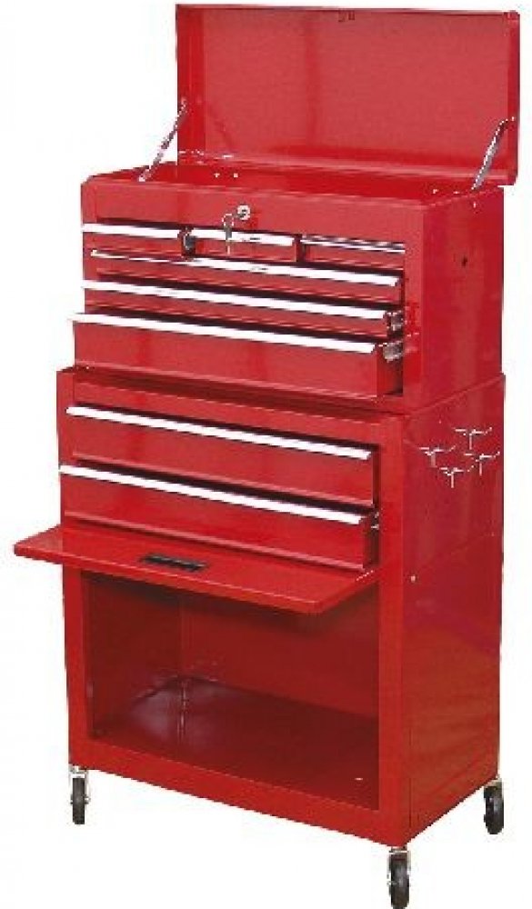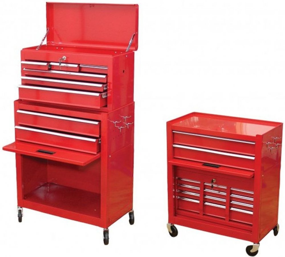 montážní vozík vysoký skládající se ze dvou částí, horní skříňku lze uložit do spodního vozíku.