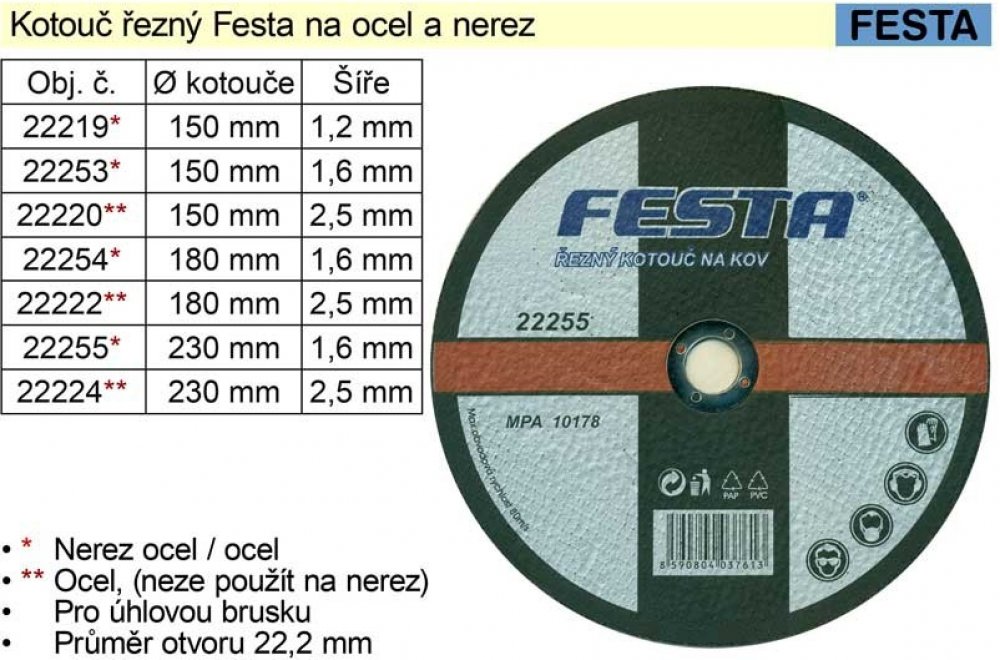 Řezný kotouč na kov FESTA 230 mm 22224