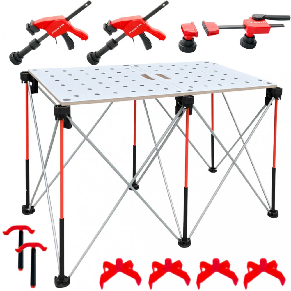 Pracovní stonožka FESTA 120 x 60 cm je skládací přenosný pracovní stůl s nosností až 1100 kg. Její kompaktní rozměry a velmi nízká hmotnost s pružnou a odolnou ocelovou konstrukci ji předurčují k práci na staveništi i v dílně. Stonožka lze rozložit a složit během několika málo sekund bez nutnosti používat jakékoliv další nářadí či cokoliv šroubovat nebo montovat - celé Vaše pracovní místo bude připraveno během chviličky. Doporučujeme používat včetně pracovní desky FESTA. Rozměry: 120 x 60 x 86 cm (šířka x hloubka x výška) Max. nosnost: 1100 kg