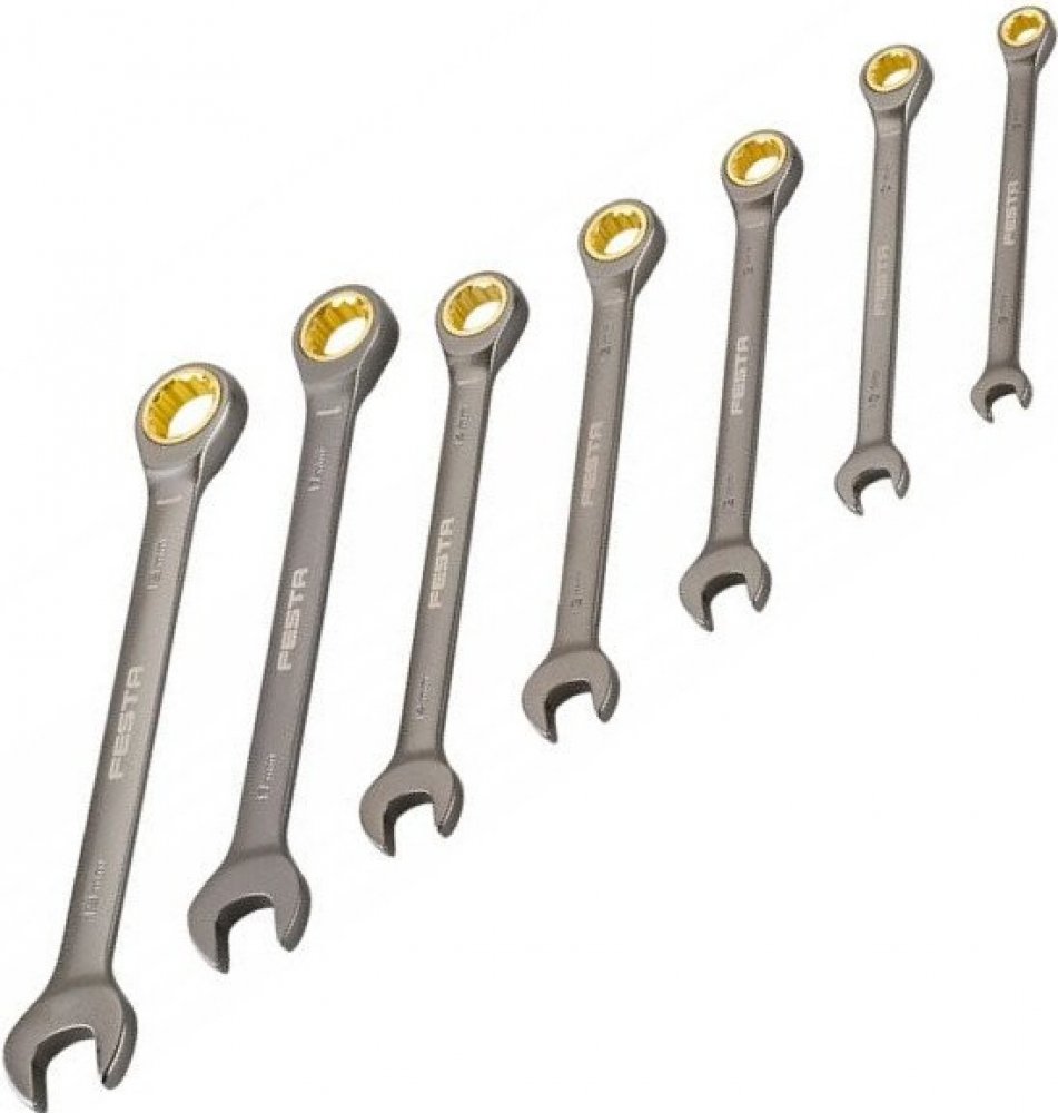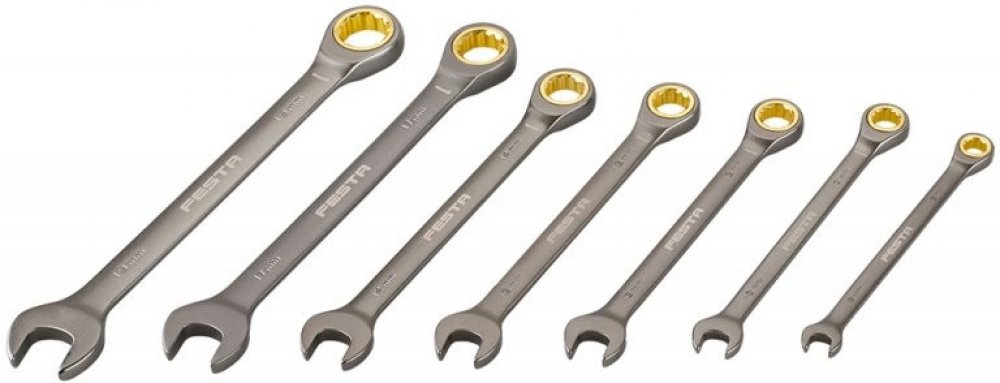 Sada nejpoužívanějších ráčnových klíčů FESTA pro použití s výhodou rohatky (ráčny)