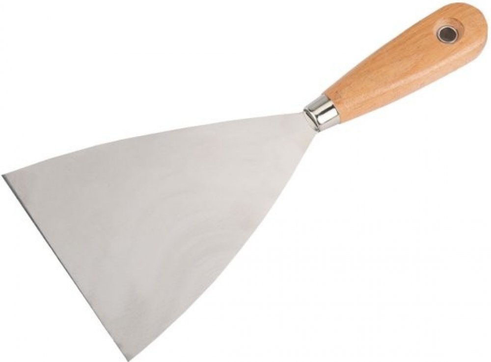 Špachtle klín nerezová FESTA 100 mm s dřevěnou ručkou. Je užíván ve štukatérství, malířství, natěračství, opravách karosérií nebo při umělecké tvorbě apod. Je vhodná pro roztírání sádry nebo jiných tmelících hmot či k odstraňování staré malby a nátěrů.