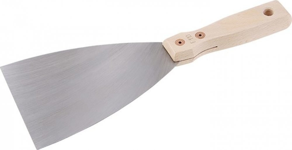Malířská stěrka (špachtle) s broušeným ocelovým břitem a s dřevěnou nýtovanou rukojetí. Malířské stěrky se použivají pro zapravování děr, zeškrabavání přebytečného materiálu apod. Šířka břitu: 110mm