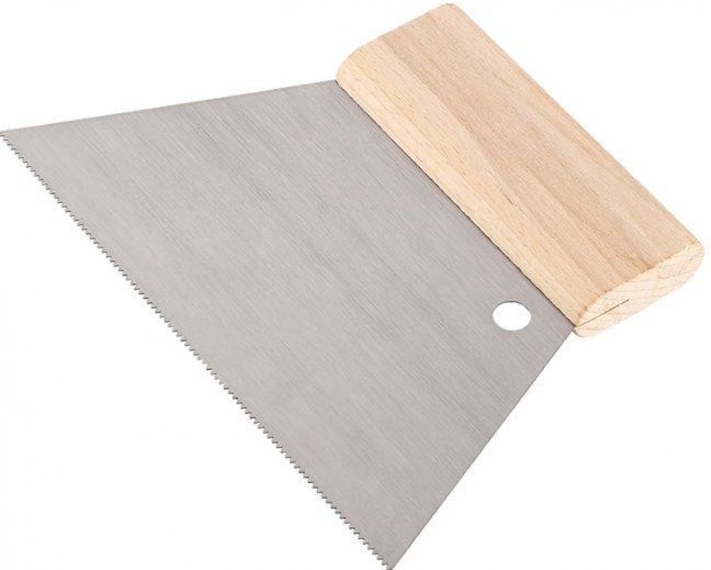 - ocelová stěrka s dřevěnou rukojetí pro podlahová lepidla