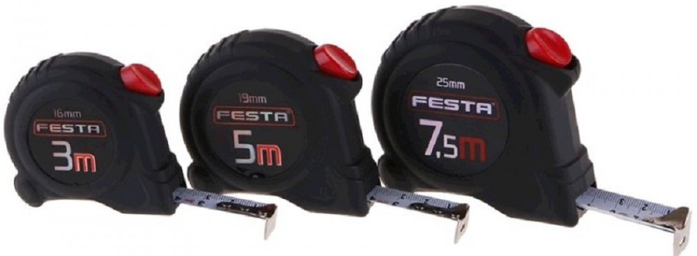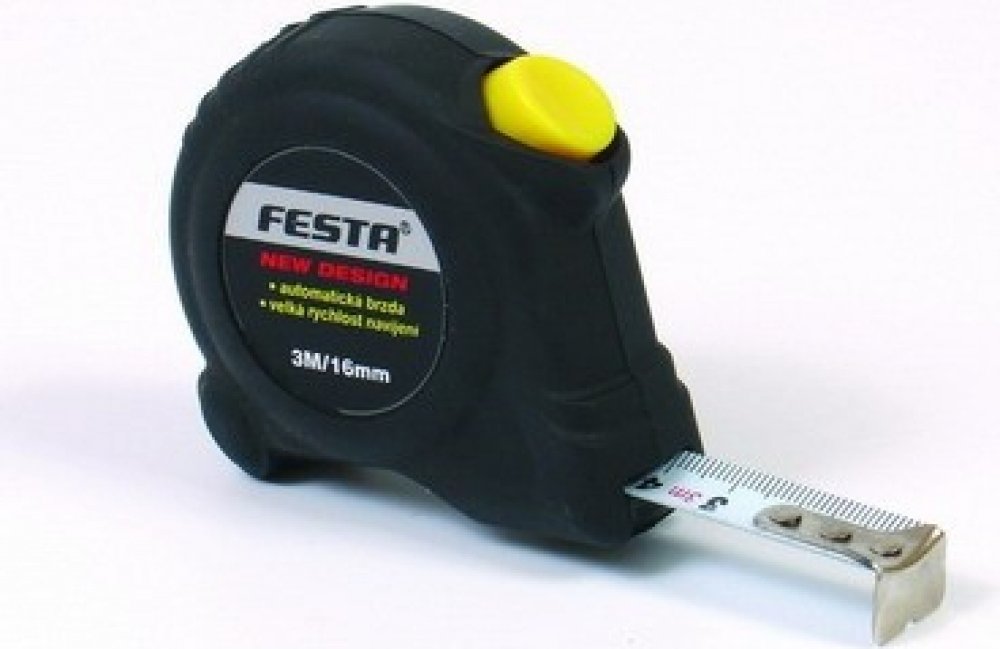 Kvalitní metr Festa je přesné měřidlo s dobře čitelnou bílou stupnicí.
