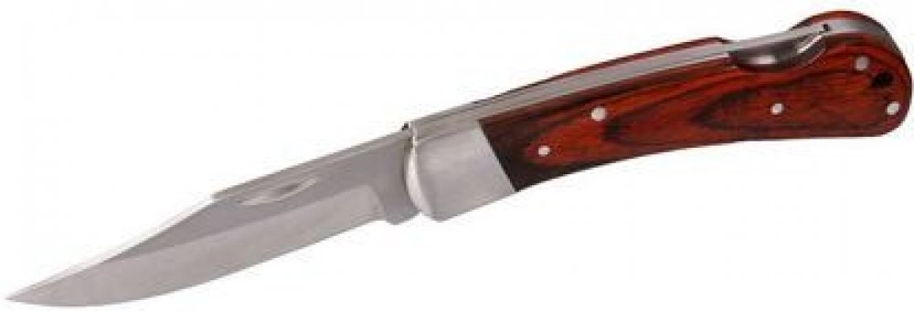 Nůž zavírací WOODY. Délka zavřeného nože je 100 mm. Nůž s velkým zavíracím nožem pro různé způsoby použití. Kvalitní dřevěná rukojeť. Zářez na čepeli pro snadné otevření. Hmotnost 0,642 kg.