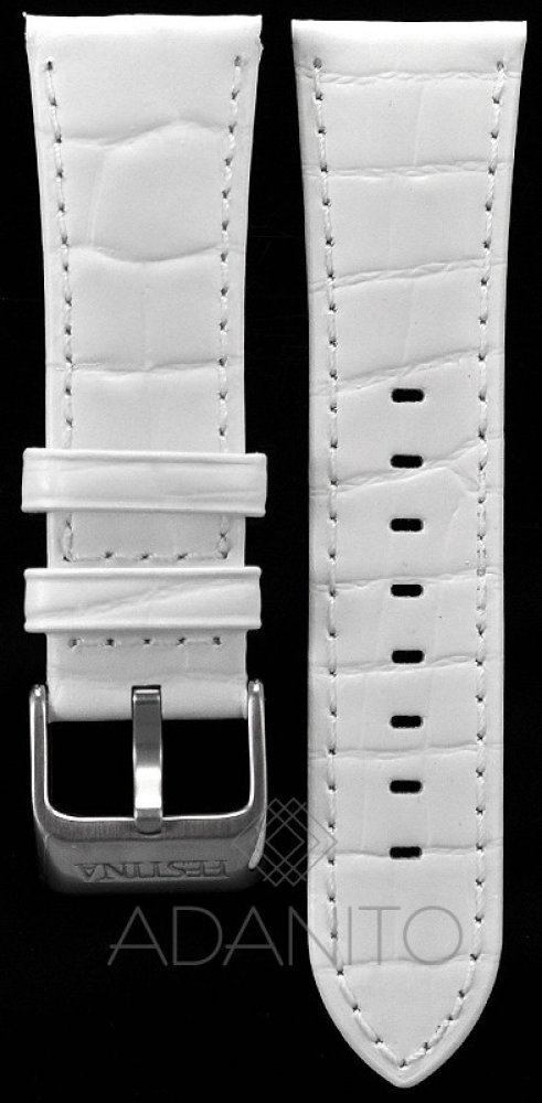 Kožený řemínek na hodinky FESTINA má šířku 25 mm. Řemínek má bílou barvu a ocelovou stříbrnou přezku. Řemínek je prošitý bílou nití. Řemínek je určen na hodinky FESTINA 16524/1 nebo řady 16524.