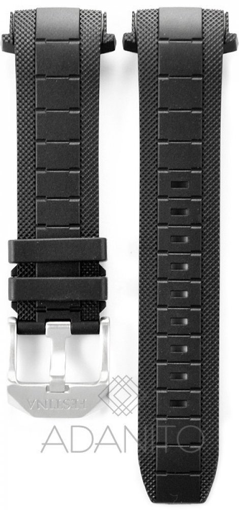Plastový řemínek na hodinky FESTINA má černou barvu a ocelovou stříbrnou přezku. Řemínek je určen na hodinky FESTINA 16970/1 nebo řady 16970.