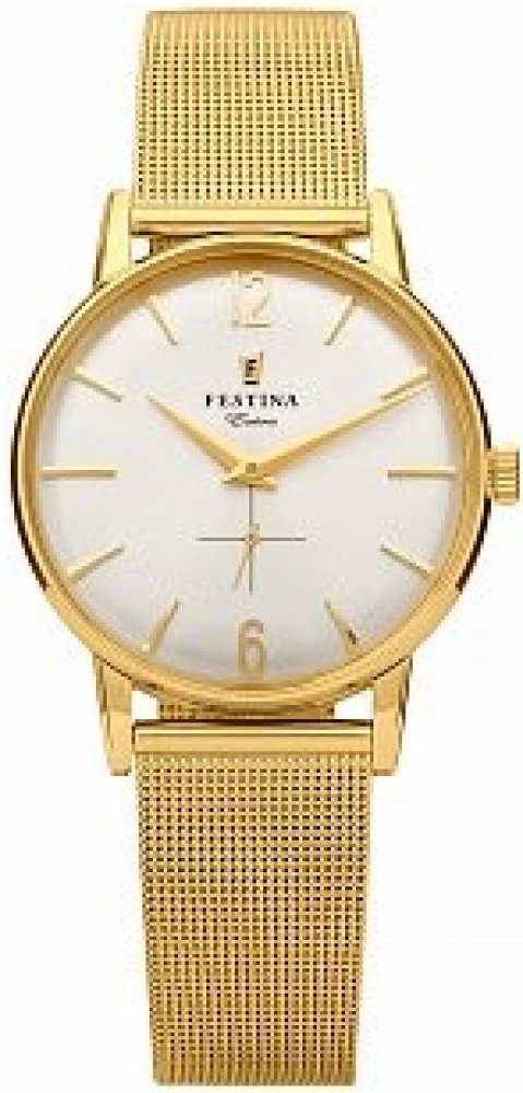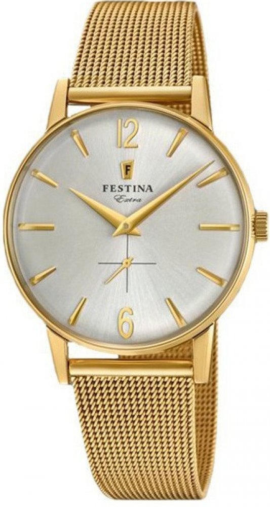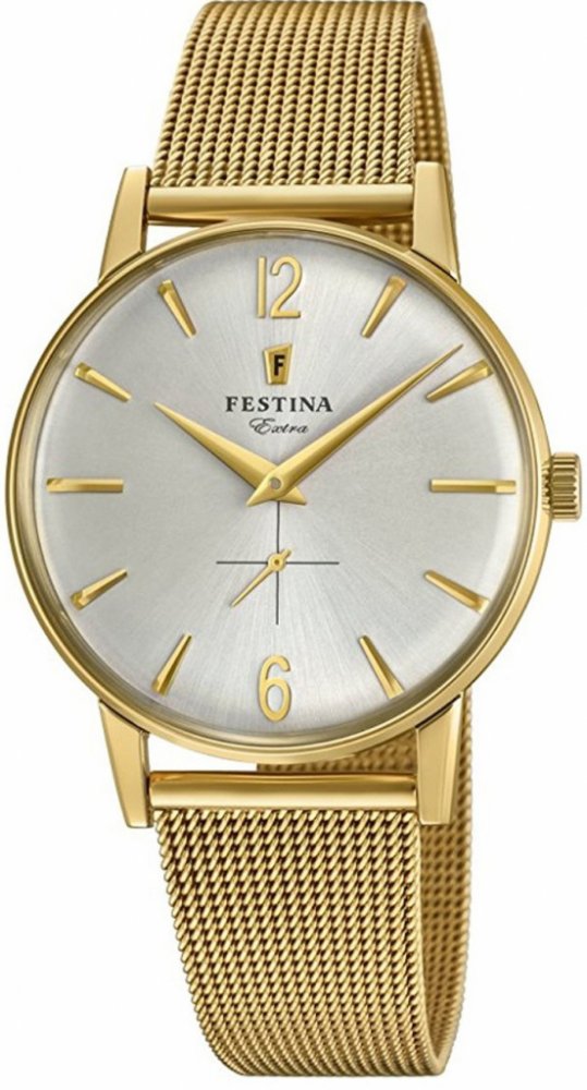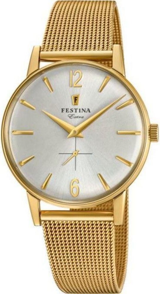 Festina analogové ocel ocel 38 x 38 x 10 mm 30 m bateriové 50 g minerální elegantní pánské bateriové - quartz Extra 1948 kulaté zlatá stříbrná posuvná spona 1.8 cm