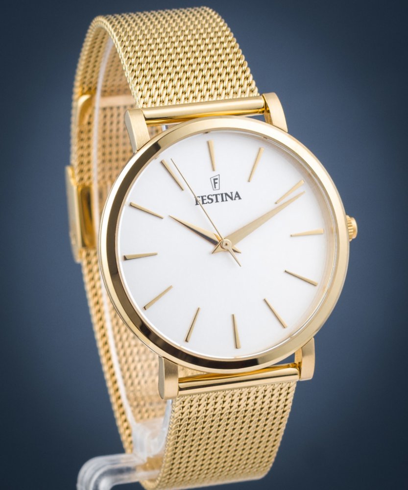 Festina analogové ocel elegantní dámské bateriové - quartz pro běžné použití (30–50 m) 38 mm ocel 30 m bateriové 59 g minerální 1.895 cm bez osazení Boyfriend kulaté zlatá stříbrná posuvná spona 1.9 cm na ruku bez číslic zlatá 3.8 cm malé pevná 8.0 mm 19.0 mm 8.0 mm 38 mm bez svícení s nenáročnou údržbou (quartz) bez chytrých funkcí