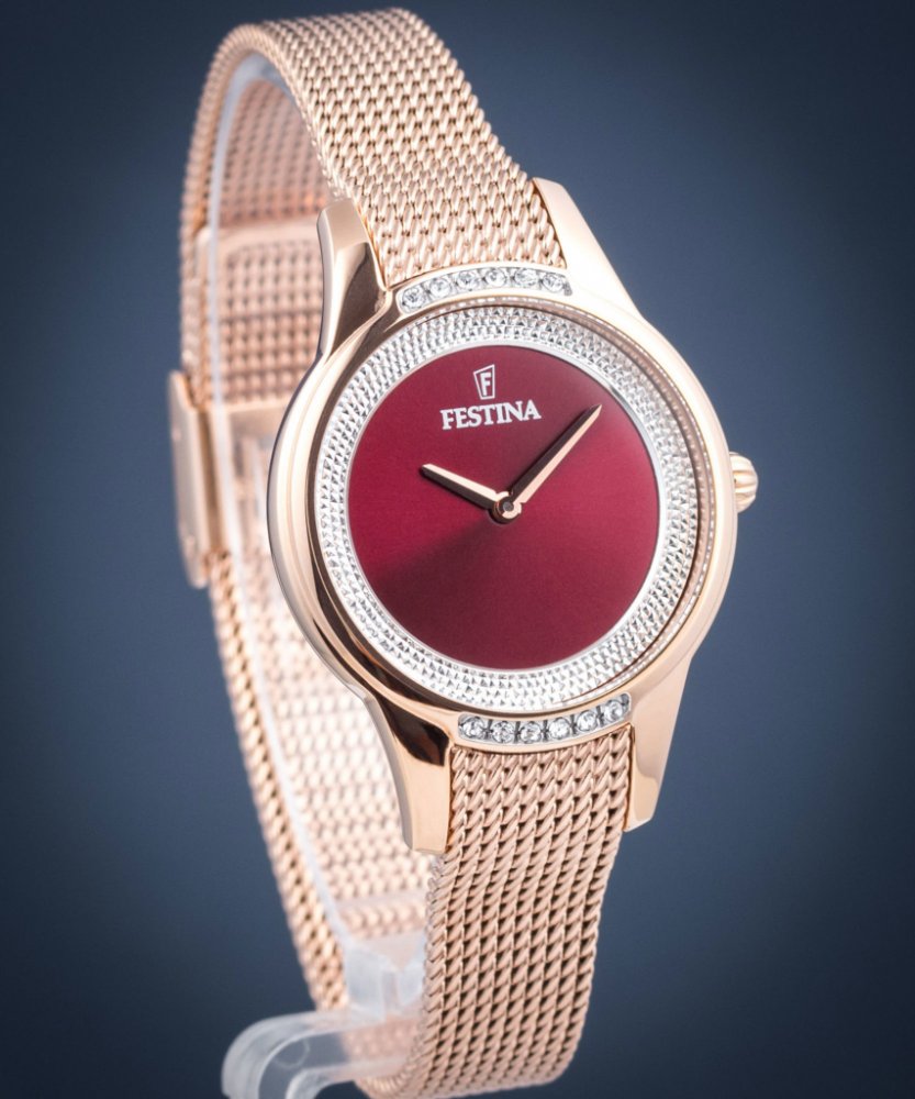 Festina analogové ocel elegantní dámské bateriové - quartz pro běžné použití (30–50 m) 30.2 mm ocel 50 m bateriové 50 g minerální 3 cm Swarovski Elements Mademoiselle kulaté růžová vínová posuvná spona 1.195 cm na ruku bez číslic 3.02 cm malé Ocel 11.95 mm 7.45 mm 30.2 mm bez svícení s nenáročnou údržbou (quartz) bez chytrých funkcí
