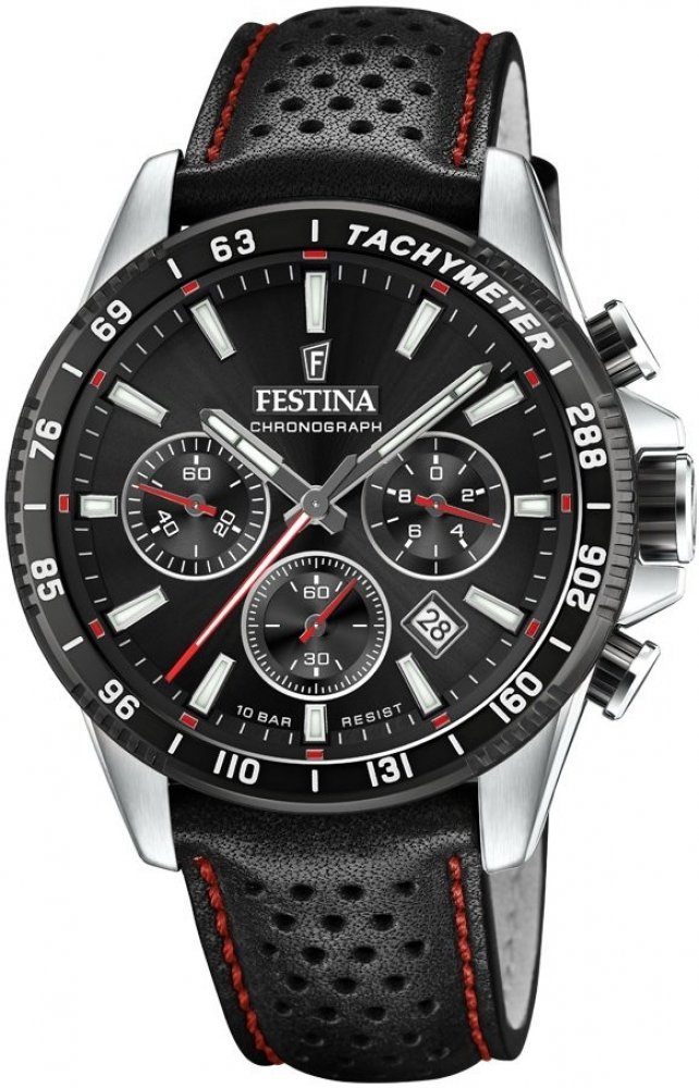 Festina analogové kůže sportovní pánské bateriové - quartz pro potápění (100+ m) 45 mm ocel 100 m bateriové 90 g minerální 2.2 cm bez osazení Timeless Chronograph kulaté černá černá s luminiscencí na přezku 2.2 cm na ruku bez číslic stříbrná ocel pevná 3 11.8 mm 45 mm s dočasným svícením (luminiscence/LED) bez chytrých funkcí