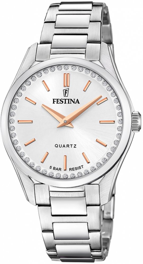 Festina analogové ocel elegantní dámské bateriové - quartz pro běžné použití (30–50 m) 35.5 mm ocel 50 m bateriové 70 g minerální 1.619 cm kamínky Mademoiselle kulaté stříbrná stříbrná překlápěcí spona 1.62 cm na ruku bez číslic stříbrná ocel 3.55 cm malé ocel 16.2 mm 7.35 mm 35.5 mm bez svícení s nenáročnou údržbou (quartz) bez chytrých funkcí