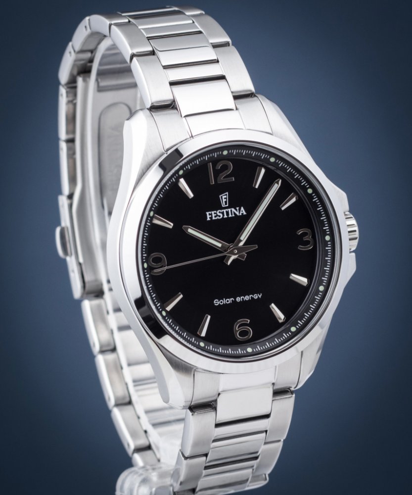 Festina analogové ocel ocel 50 m solární 120 g minerální klasické pánské solární Solar Energy kulaté stříbrná černá překlápěcí spona 2 cm s luminiscencí