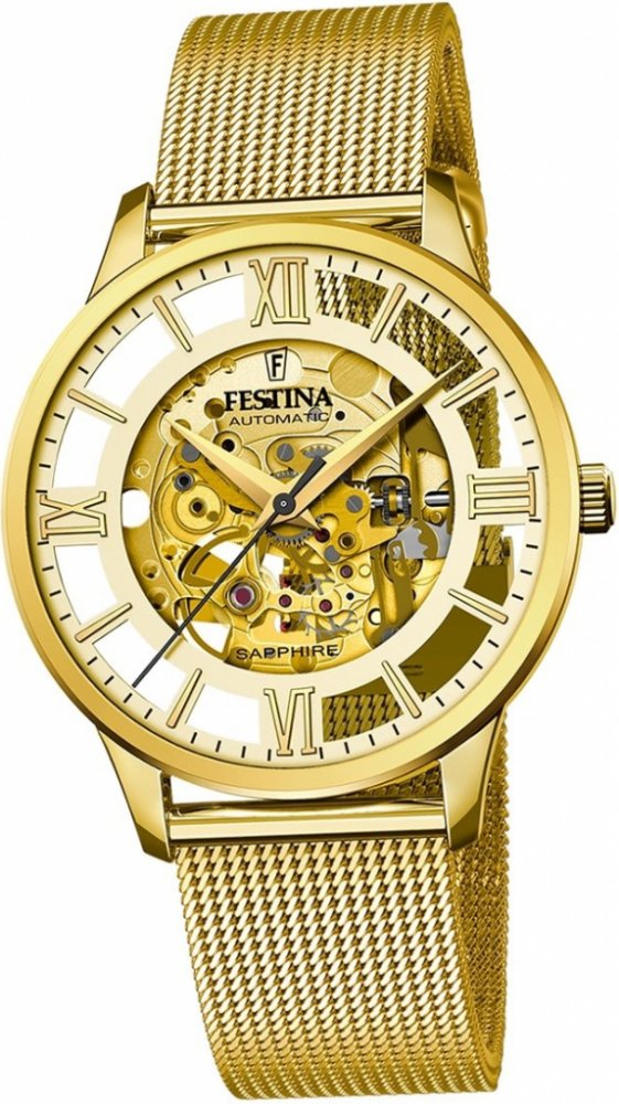 Festina analogové ocel ocel 50 m automatické 90 g safírové sportovní pánské automatické Automatic kulaté zlatá zlatá posuvná spona 1.995 cm