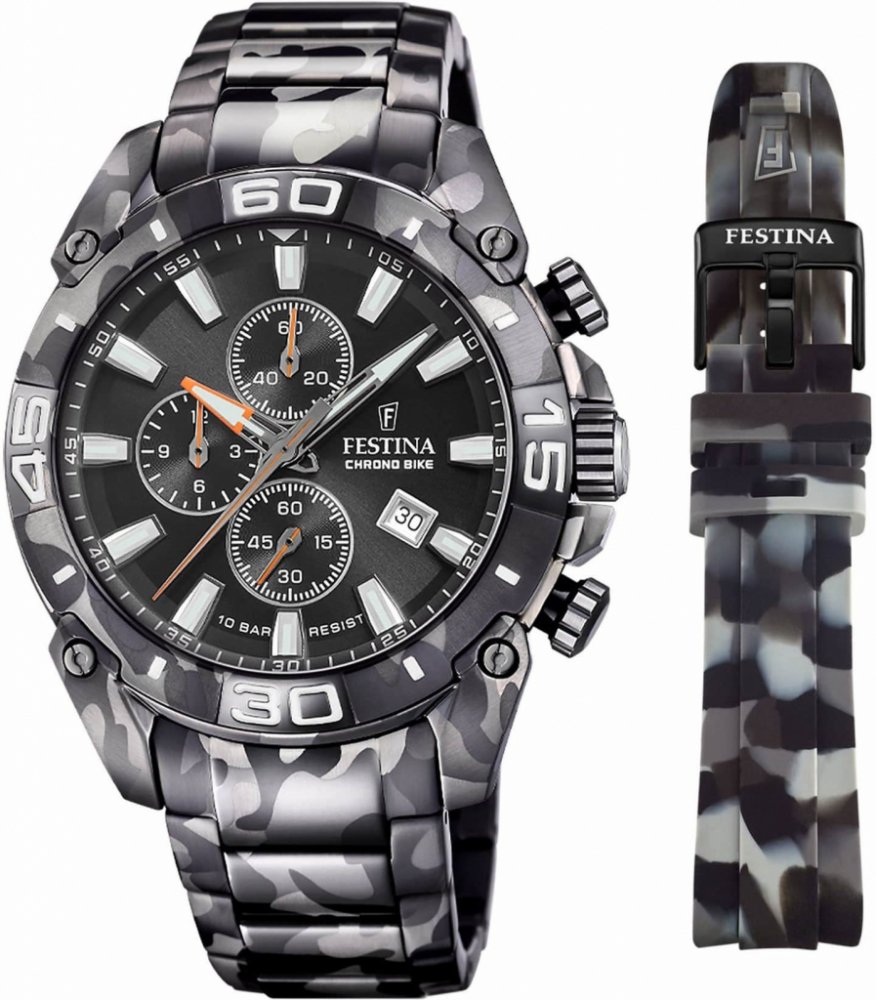 Festina analogové ocel ocel 100 m 185 g safírové sportovní pánské bateriové - quartz Chrono Bike kulaté vícebarevná černá překlápěcí spona 2.18 cm